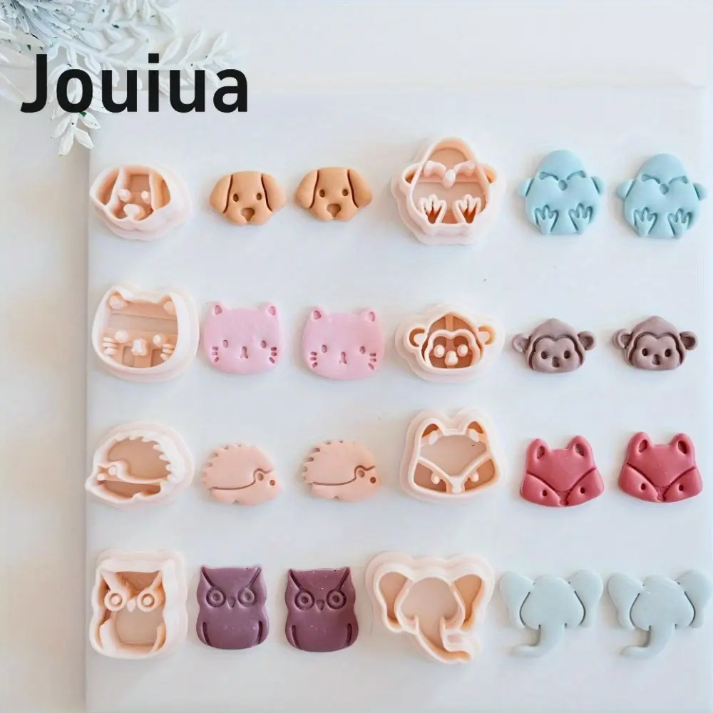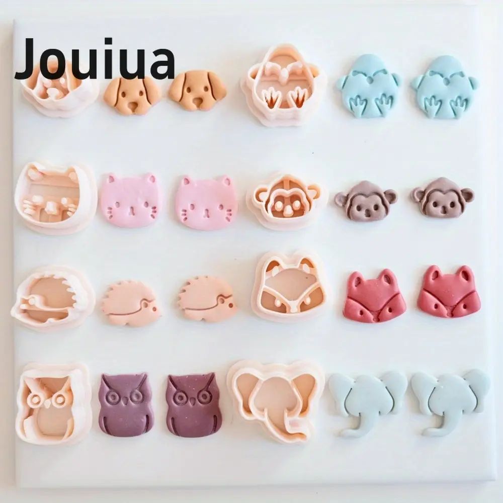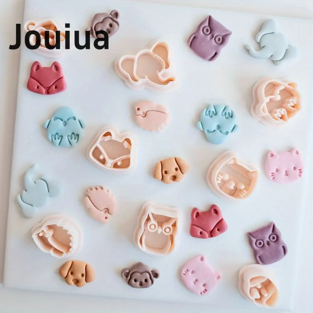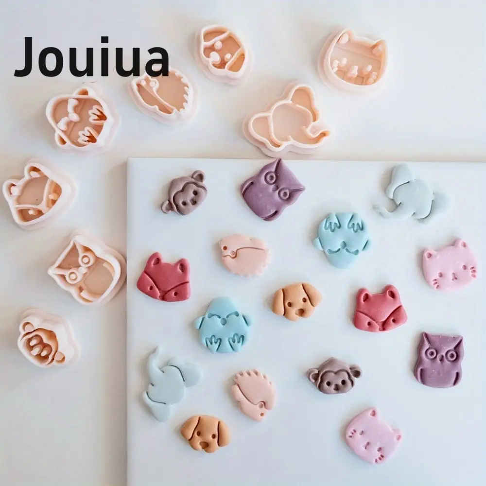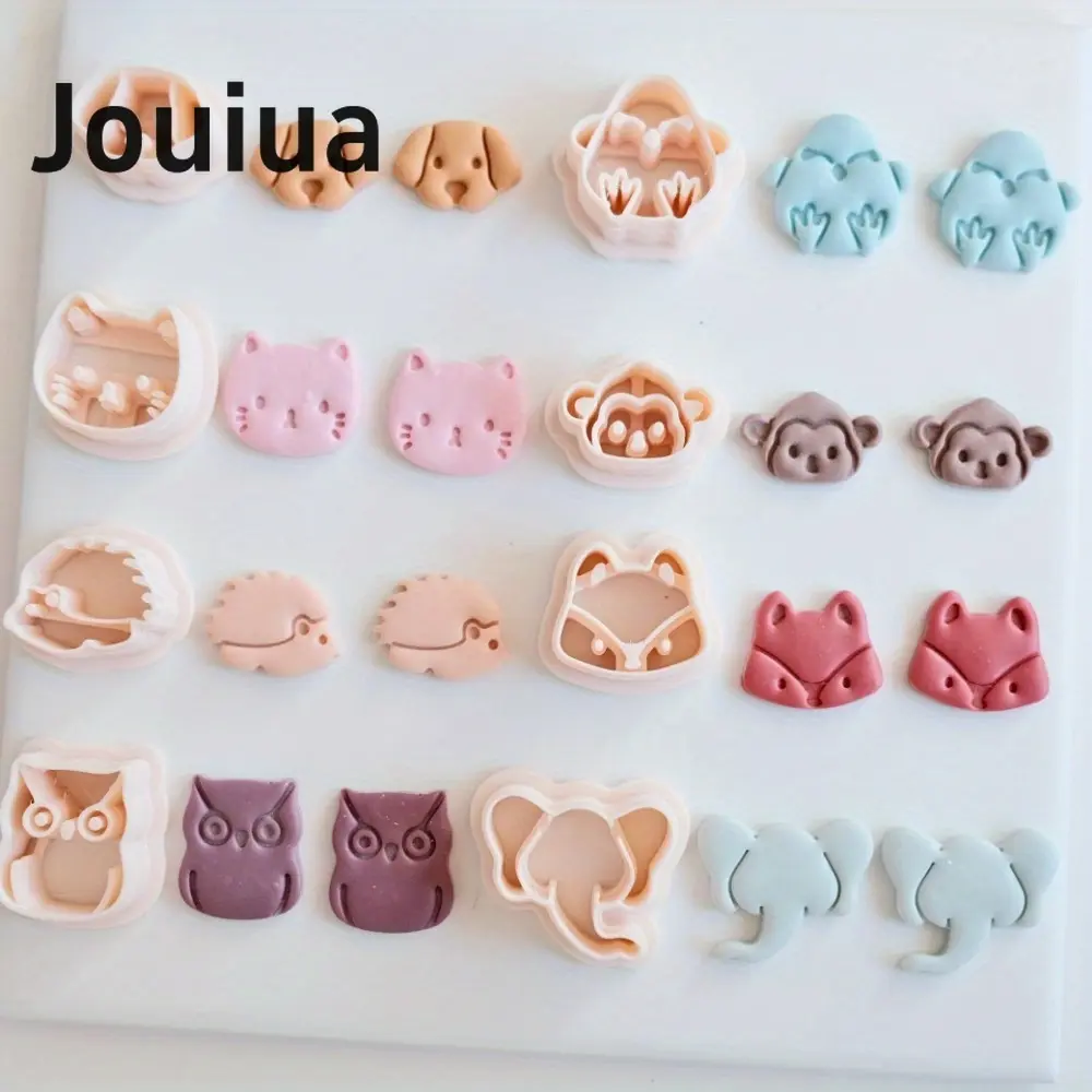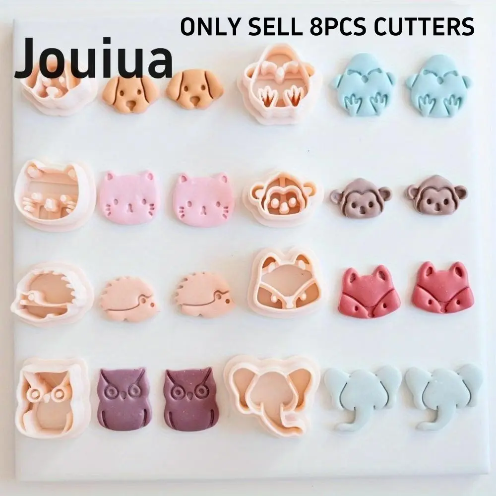 8pcs Mini Cat Dog Owl Monkey Fox Elephant Hedgehog Clay Cutter Set Animal-Themed Polymer Clay Cutters, Plastic Craft Molds for DIY Jewelry Making