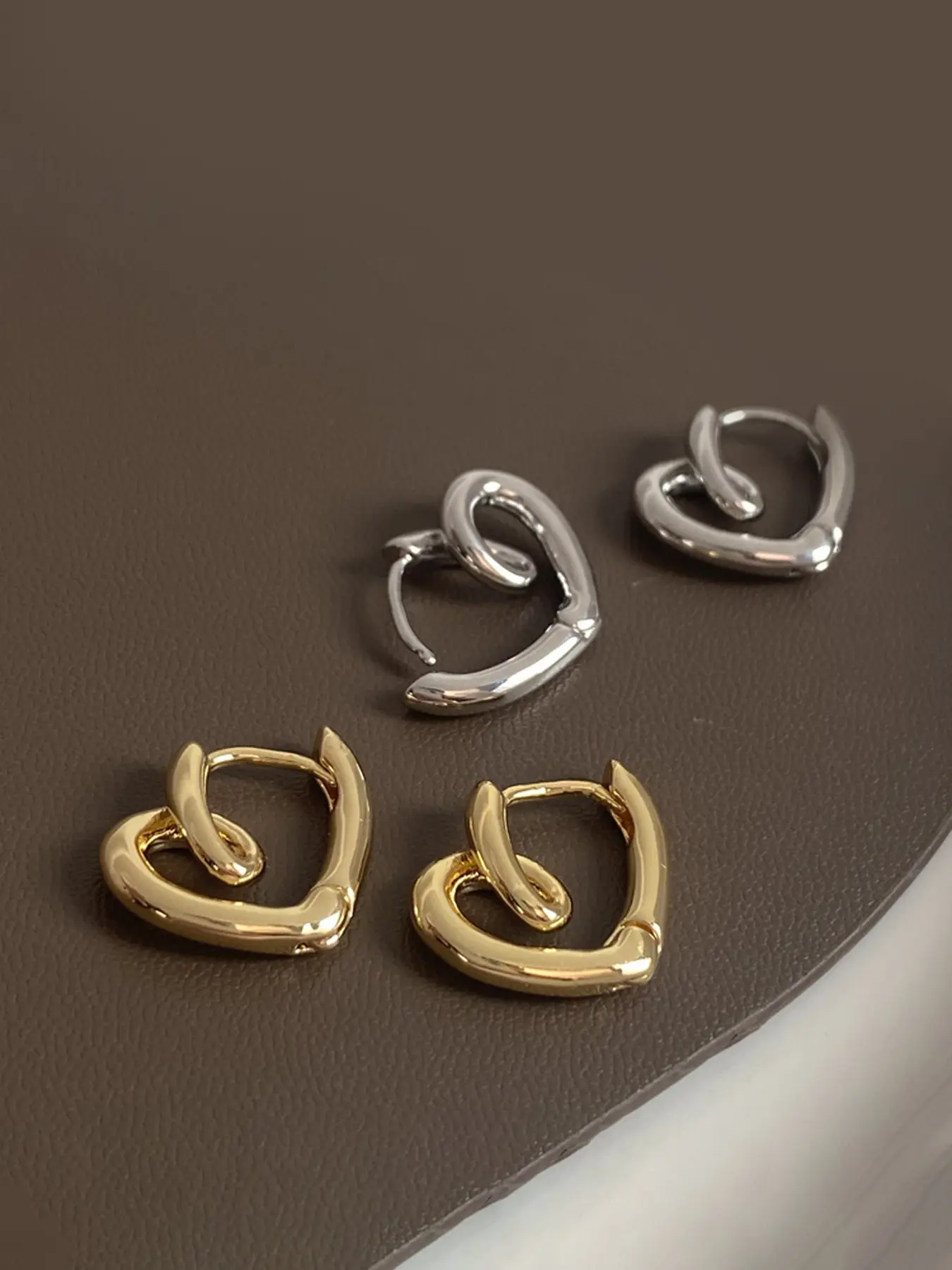 5. Women's Heart-Shaped Metal Ear Studs, Korean Style Minimalist Design, Cold-Weather Fashion Accessory, Unique Women Jewelry