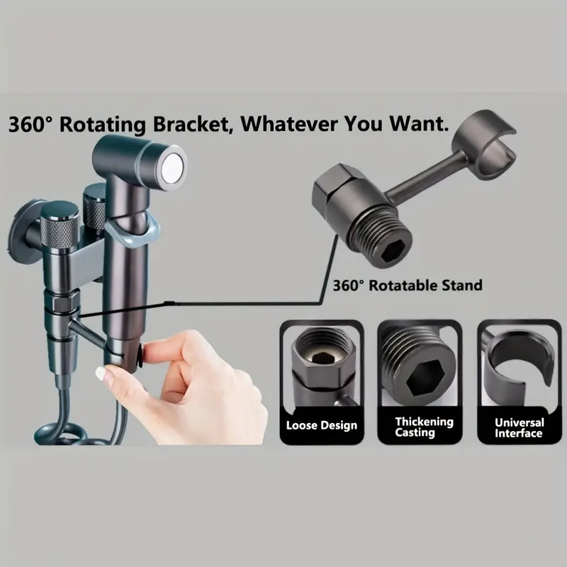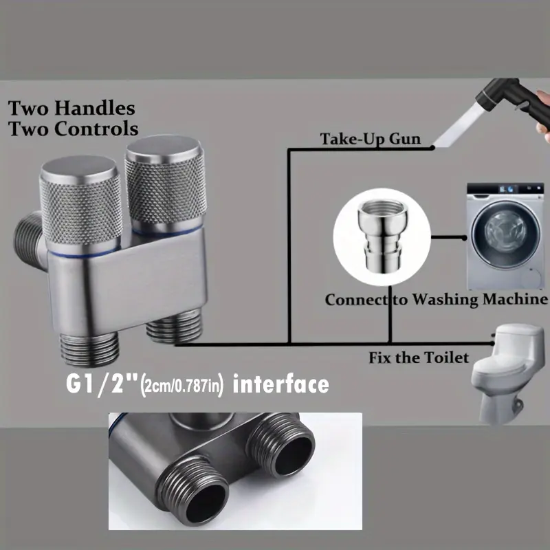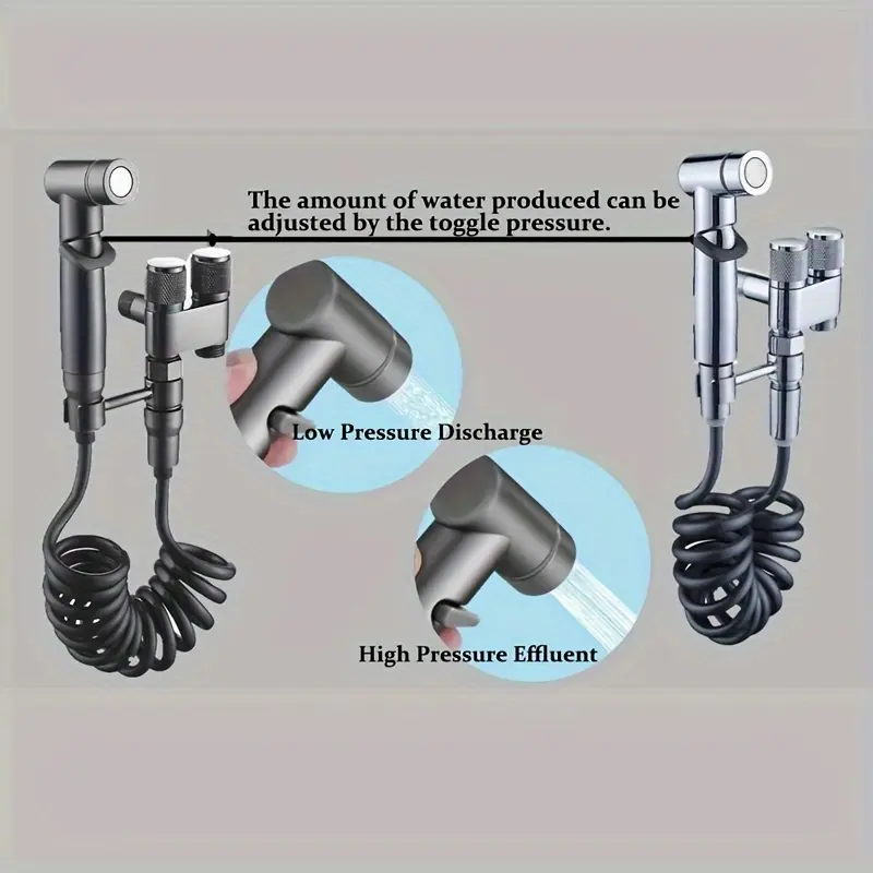 High Pressure Shower Spray Gun Set, Copper Body Dual Control Faucet, Bathroom Accessories, Toilet Bidet Attachment, One in Two Out Design, Toilet Cleaner