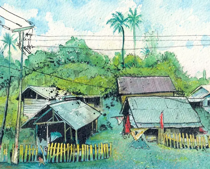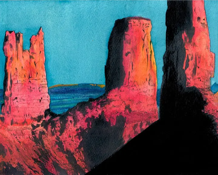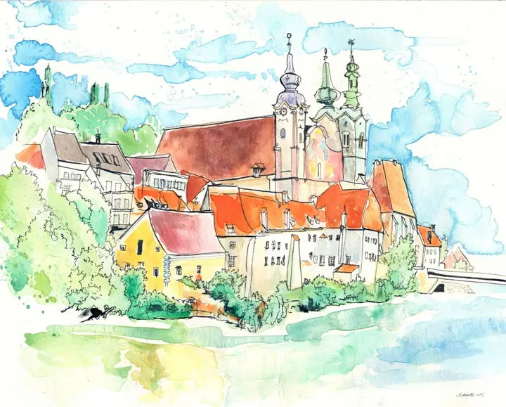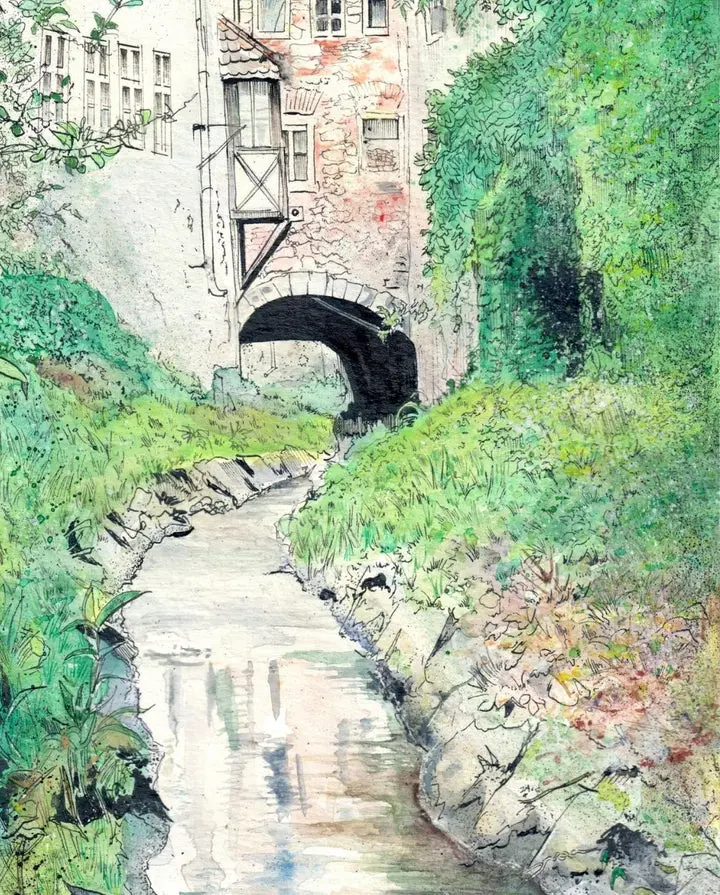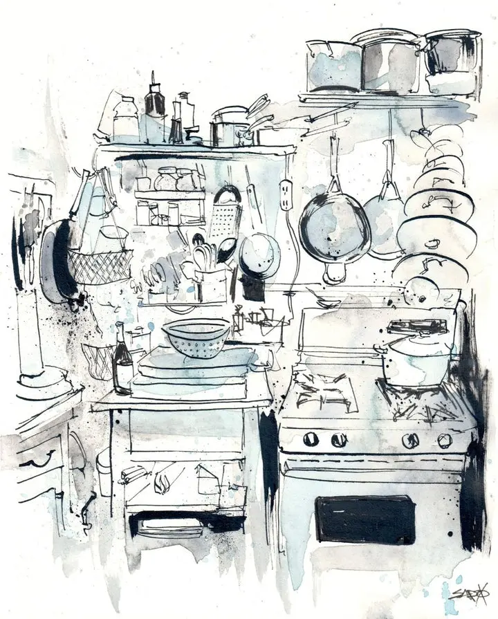 Every piece begins as a hand drawn original, combining loose watercolor washes with expressive ink linework. The prints are produced locally in St. Joseph, Michigan, ensuring high quality color and detail that stays true to the original artwork.