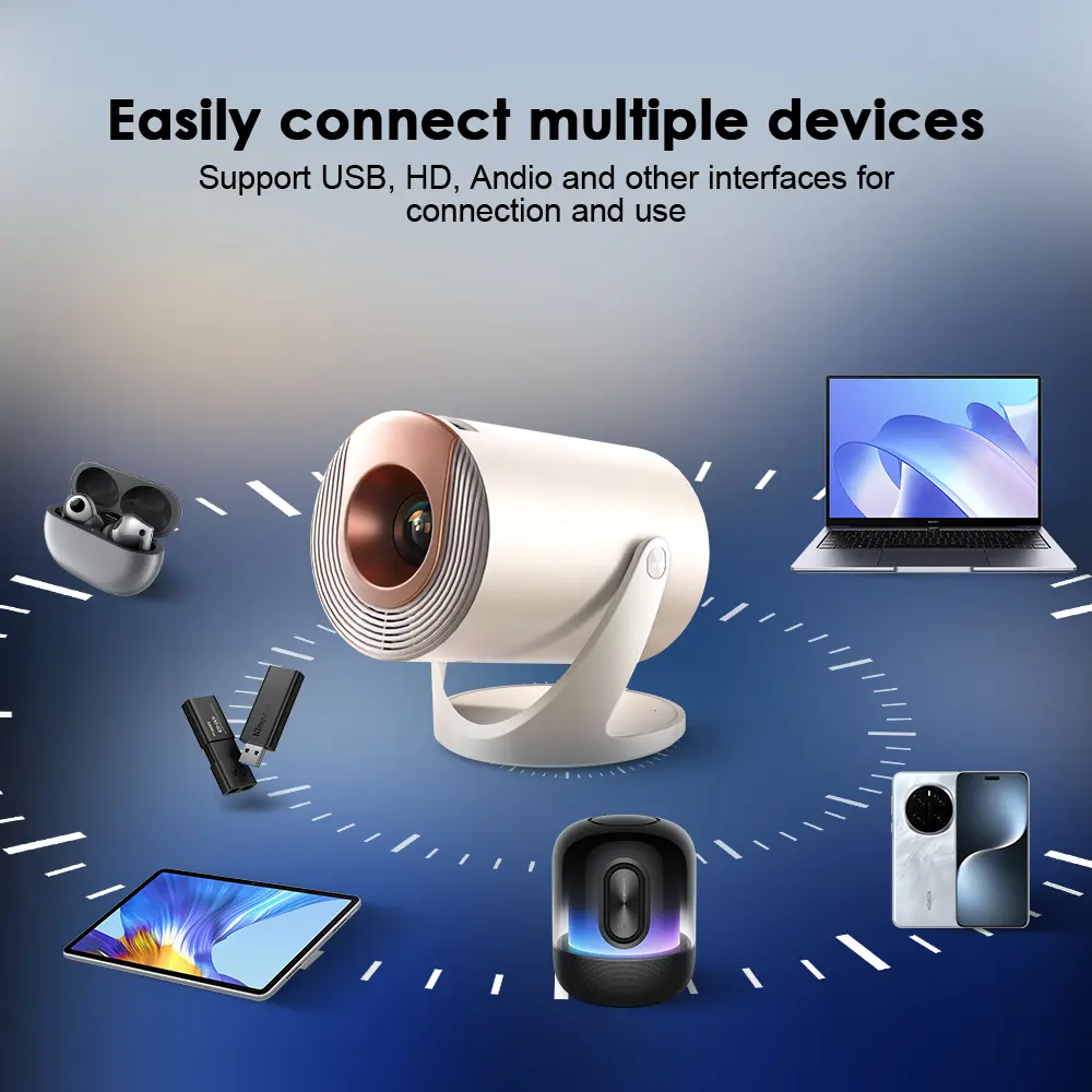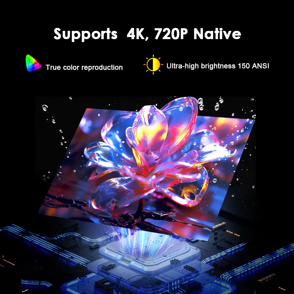 AMOVFILM 2026 Smart Mini Projector | 4K Support, Native 1080P HD, Built-in Netflix, WiFi & Bluetooth, Auto Keystone, 180° Rotation, Portable Home Theater