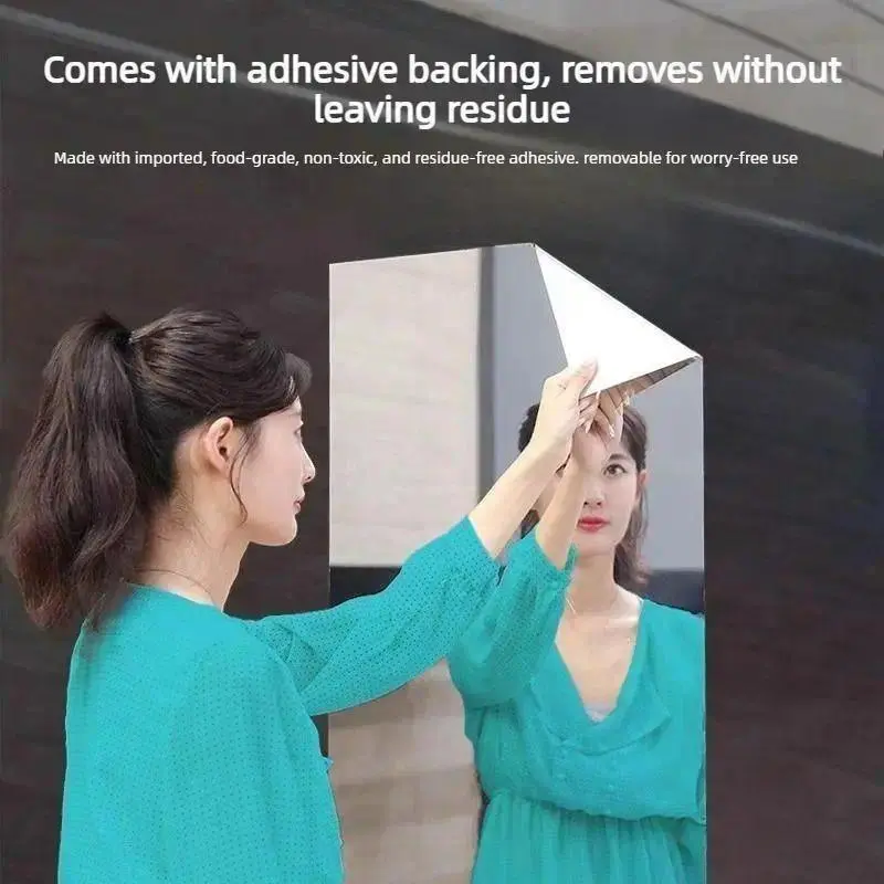 Self-adhesive Mirror Sticker Dimensions: This mirror sticker measures 20 × 40 inches, perfect for self-service or glass doors. Material: Made from soft glass, this mirror sticker is ideal for home use. Versatility: Suitable for full-length mirrors, it can be used in bedroom settings for an Instagram-style reflective effect. Easy Installation Backed with Tape: The mirror sticker comes with backing tape for easy installation. Versatile Use: Whether for self-service or glass doors, this mirror sticker is a practical choice. Home Use Ideal for Bedrooms: This mirror sticker is perfect for adding a reflective touch to your bedroom. ️ Instagram Style: Enhance your space with an Instagram-style reflective film.