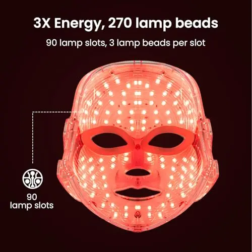 [Full Face Coverage & Ergonomic Fit] - Designed with 90 precision-placed bulbs, the mask ensures even light exposure across your entire face. Its flexible, skin-friendly silicone comfortably conforms to various face shapes for a relaxing, spa-like session.