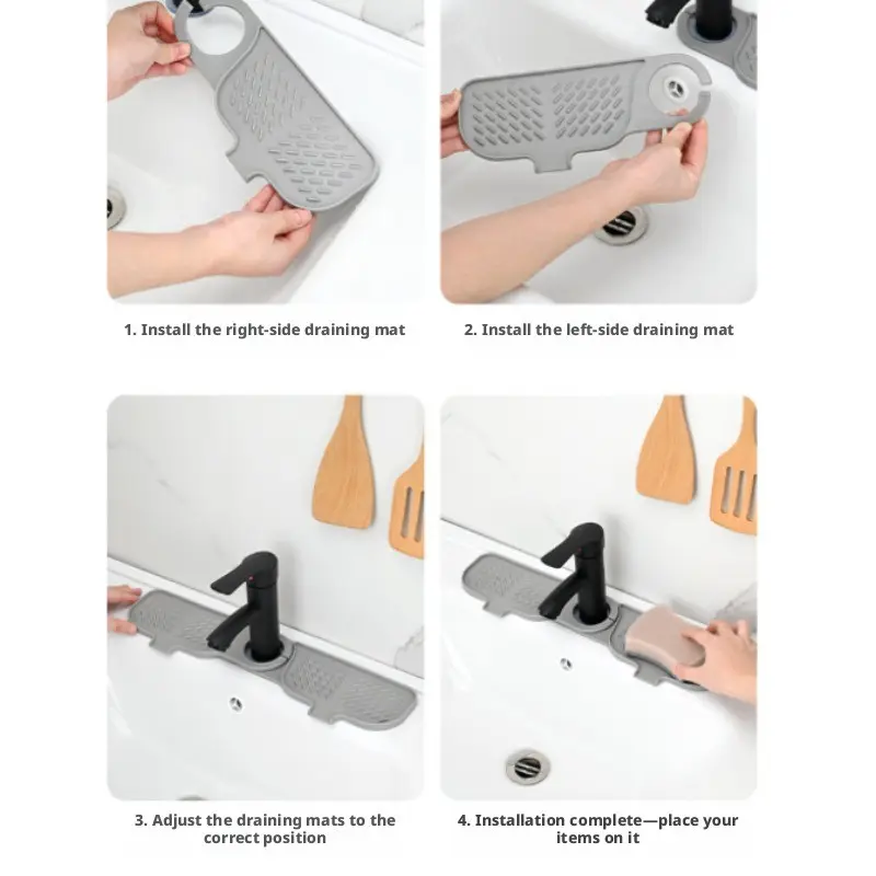 Silicone Drying Mat Sink Faucet and Countertop Organizer for Soap and Accessories