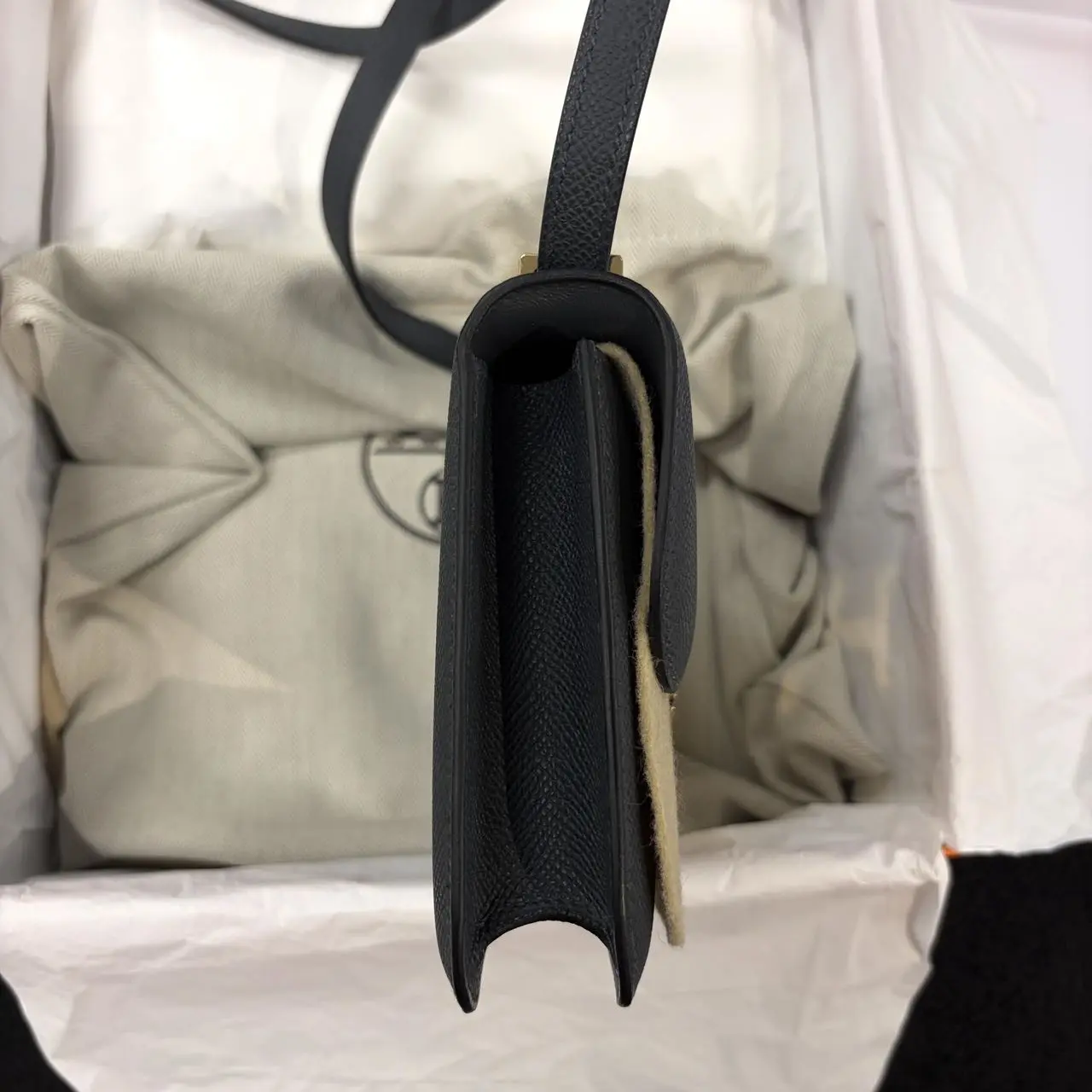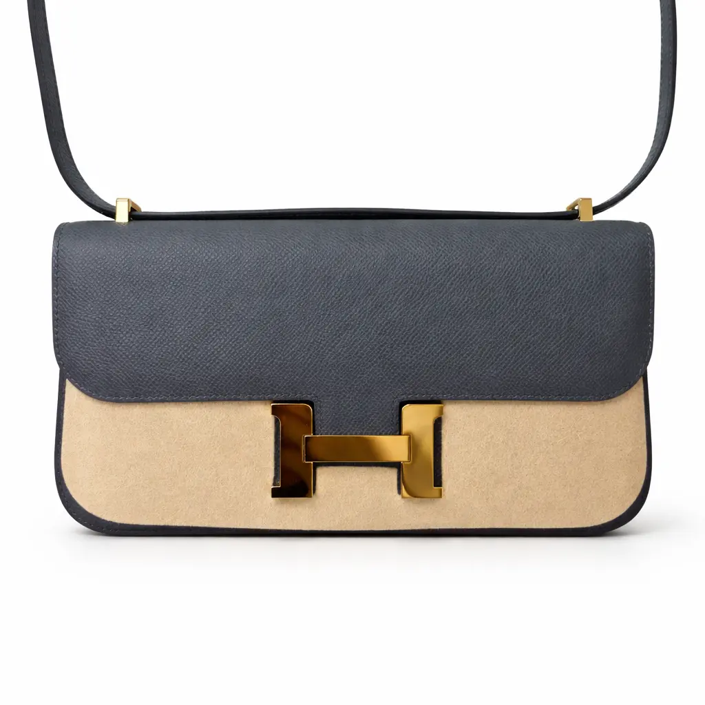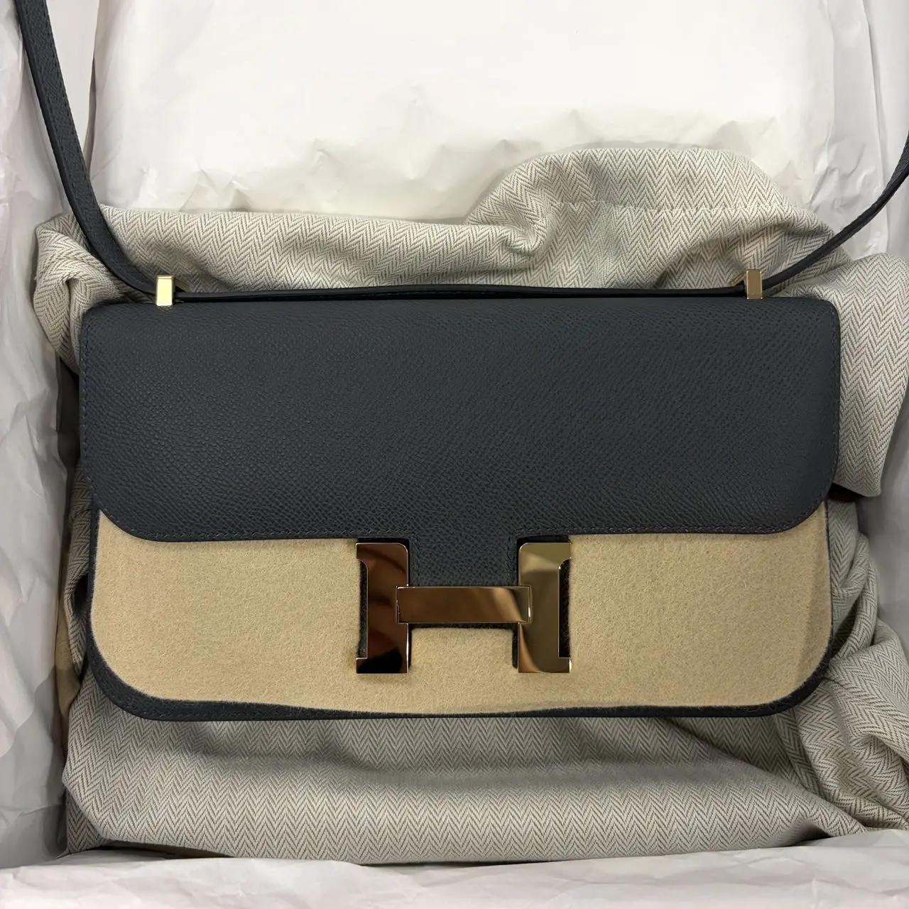 This pre-owned Hermes Constance Elan Gris Misty Epsom GHW is a genuine accessory. It combines elegance with authenticity, making it a valuable addition to any collection.