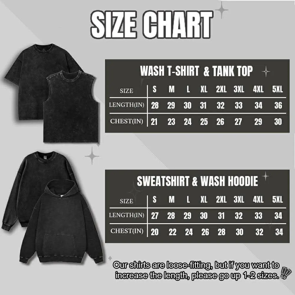 - Each garment may have slight color variations due to the washing process