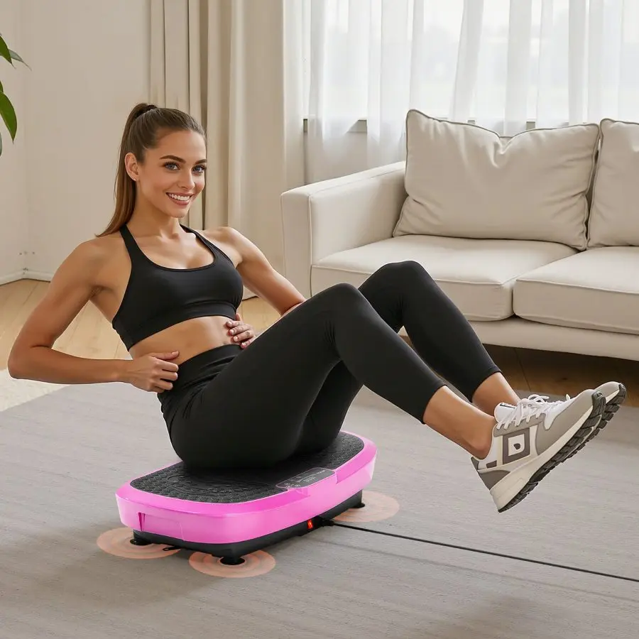 VEVOR Vibration Plate Exercise Machine, Full Body Shaker with Magnetic Acupoints for Lymphatic Drainage and Weight Loss, Home Gym Workout Fitness Equipment with 2 Resistance Bands for Women Men, Pink
