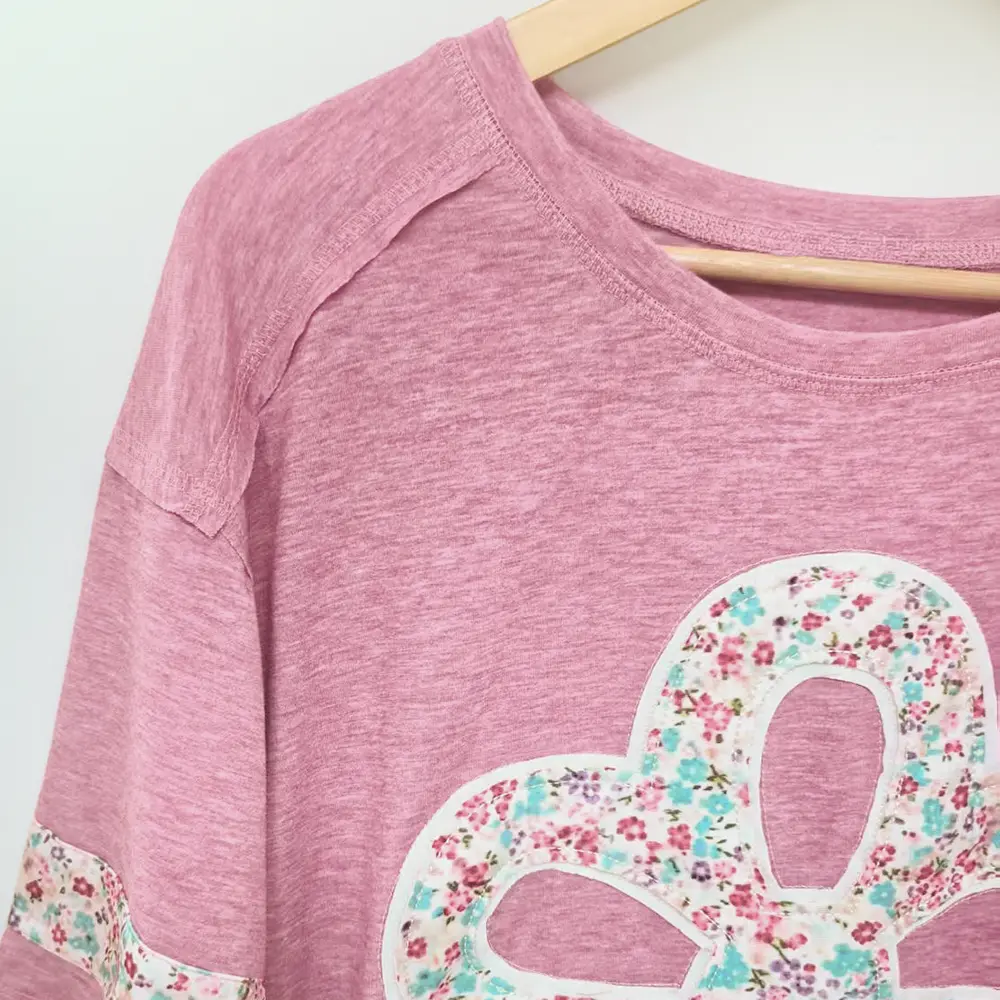 ·Cohesive design – Matching floral band on sleeves elevates the casual silhouette.