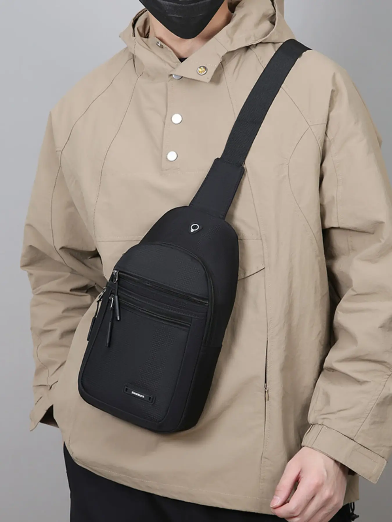 Men's Casual Nylon Chest Bag, Multi-Functional Zipper Pouch, Comfortable Outdoor Sports, Cycling, Commuting, Adjustable Strap Backpack