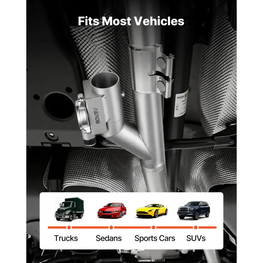 VEVOR Electric Exhaust Cutout, 2.5 Inch 2PCS Universal Stainless Steel Exhaust Valve Kit with One Controller Remote Kit, Cut Out Valve, Y Pipe, Remote Control, Fits Trucks, Sedans, Sports Cars, SUVs