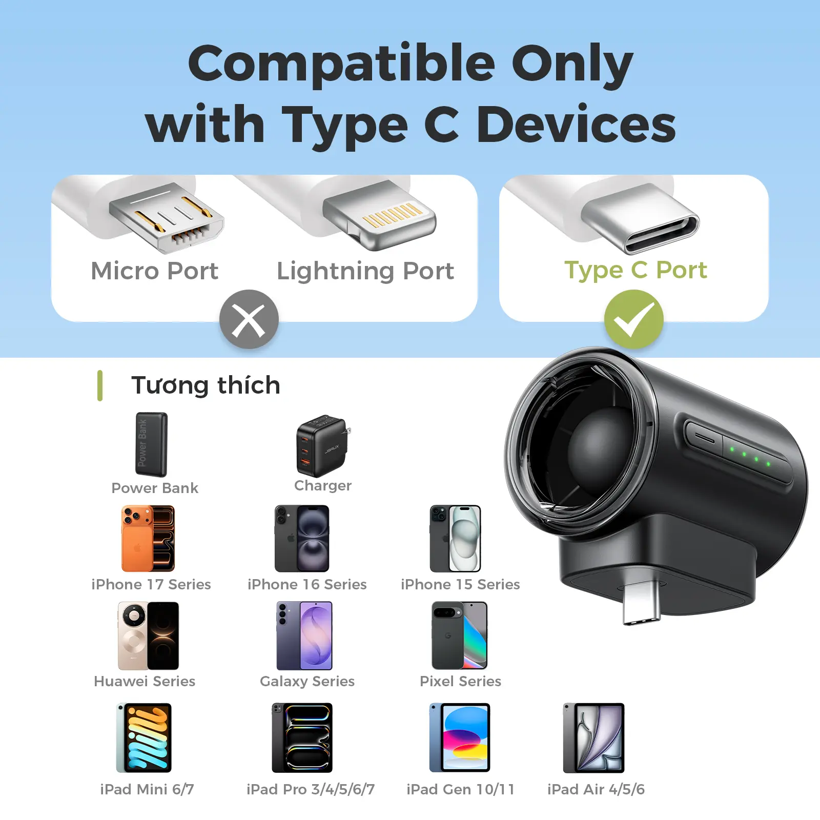 ·Plug-and-play: Use directly with a backup charger or smartphone.