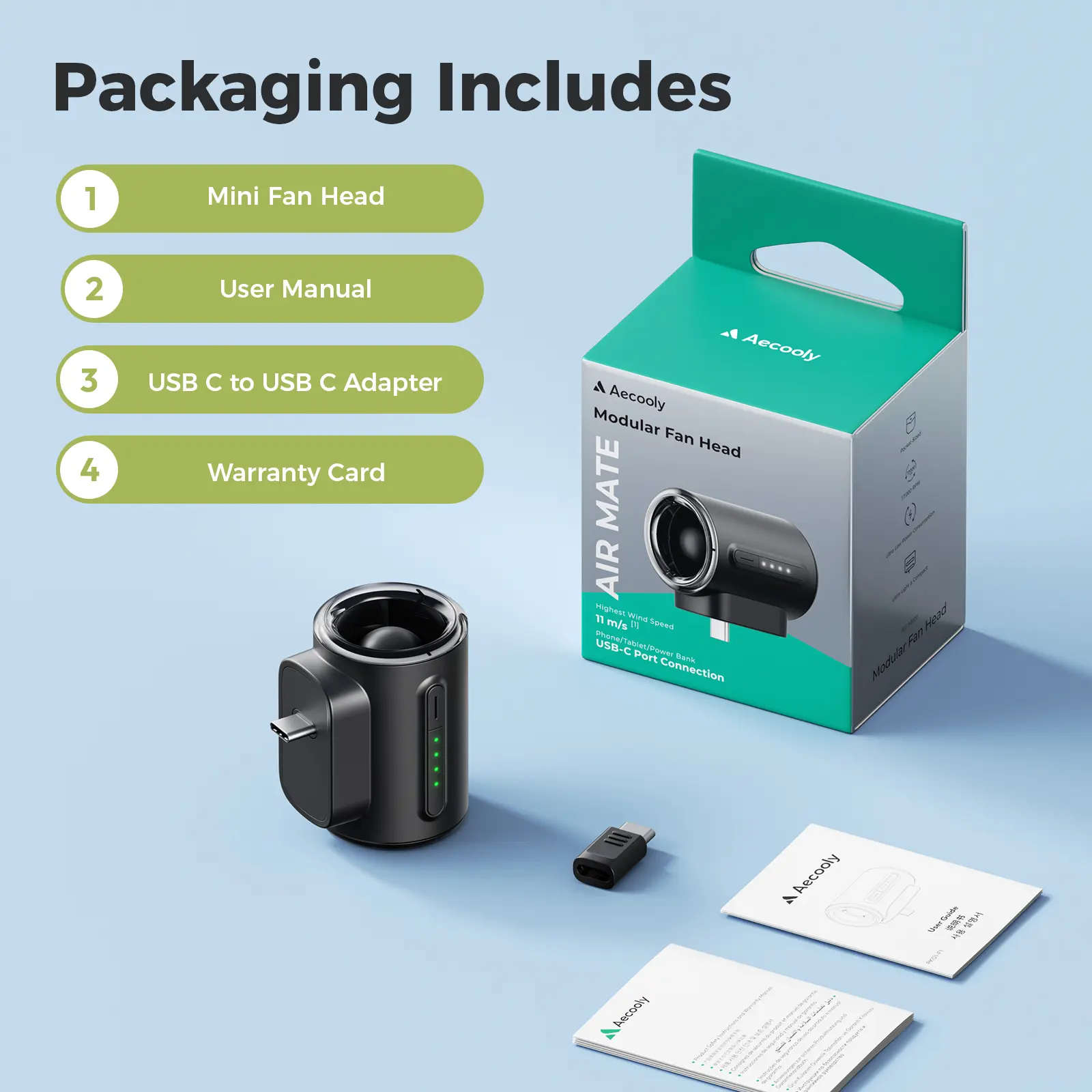 ·Super Light & Minimalist: The fan head is optimized for ultra-light weight and extremely modest size.