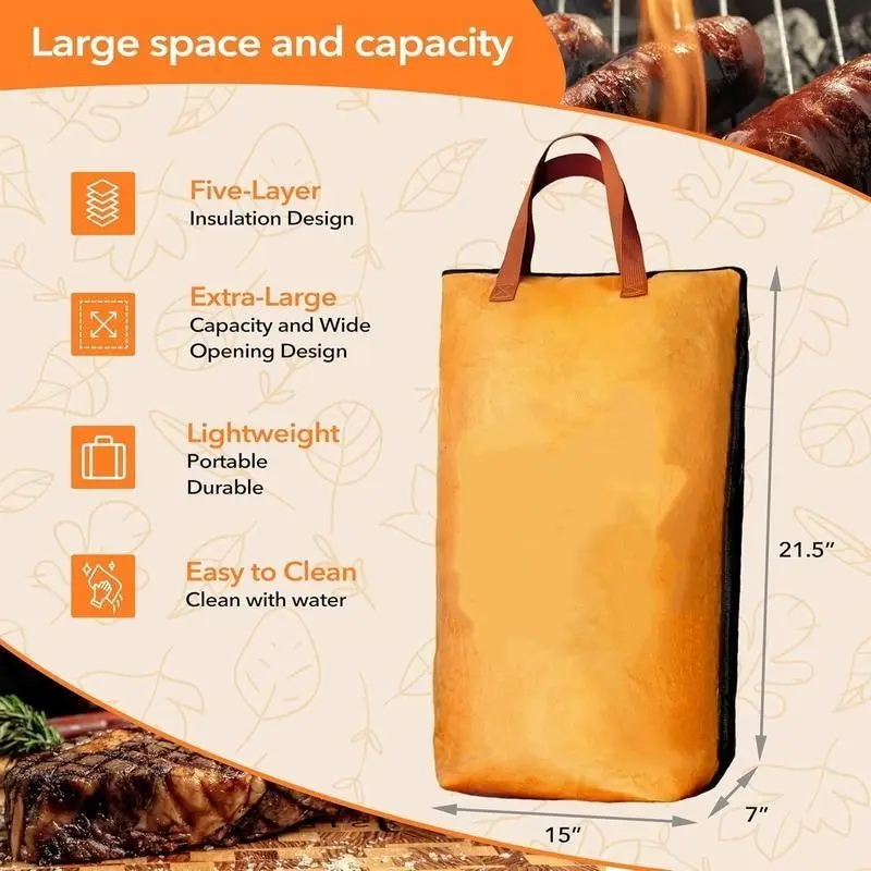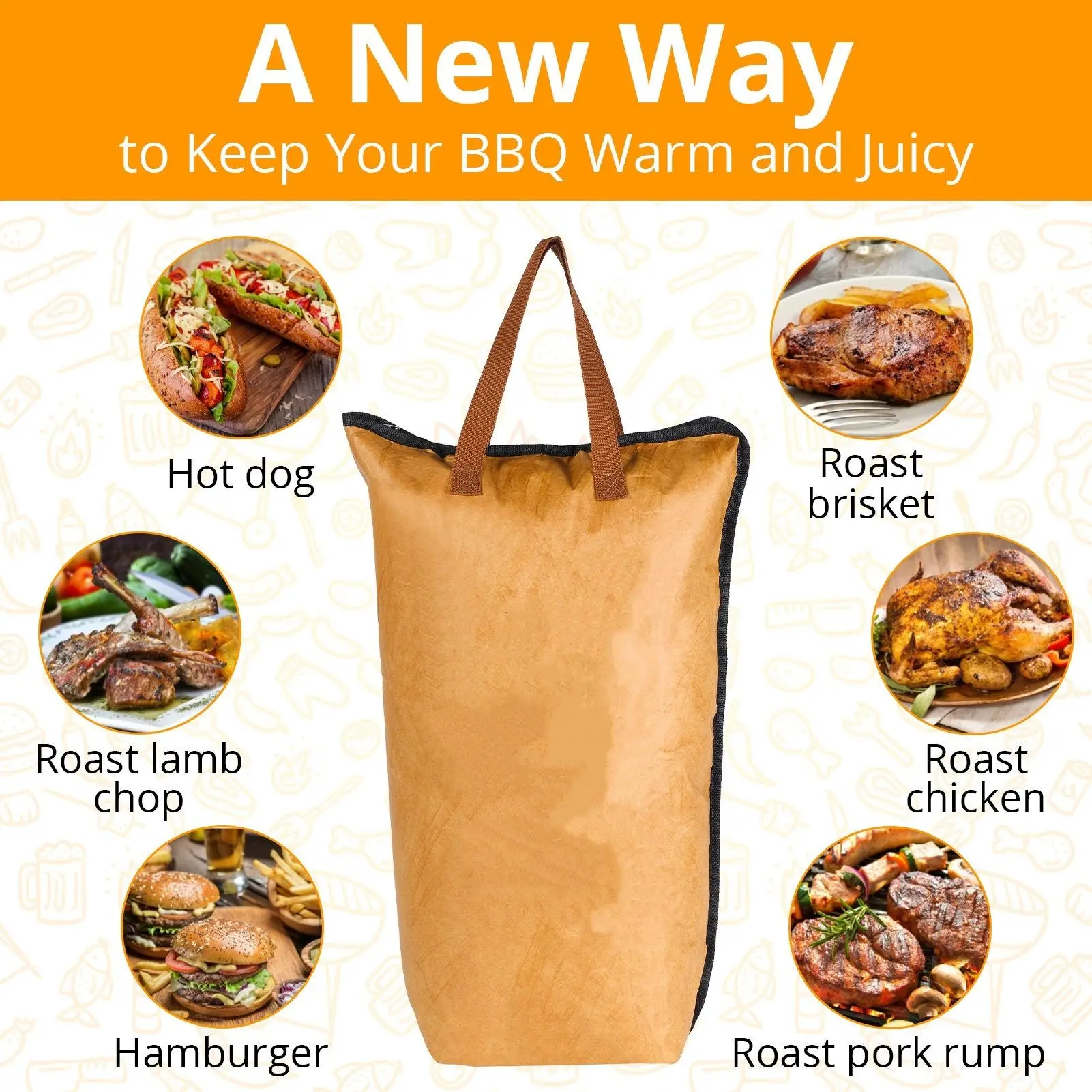 Heavy Duty BBQ Blanket for Resting Meat 5-Layer Insulated Meat Resting Bag with Wide Mouth Handle and Moisture Retention for Perfect Briskets Pork Shoulders Steaks Brown 21 Inch - YY