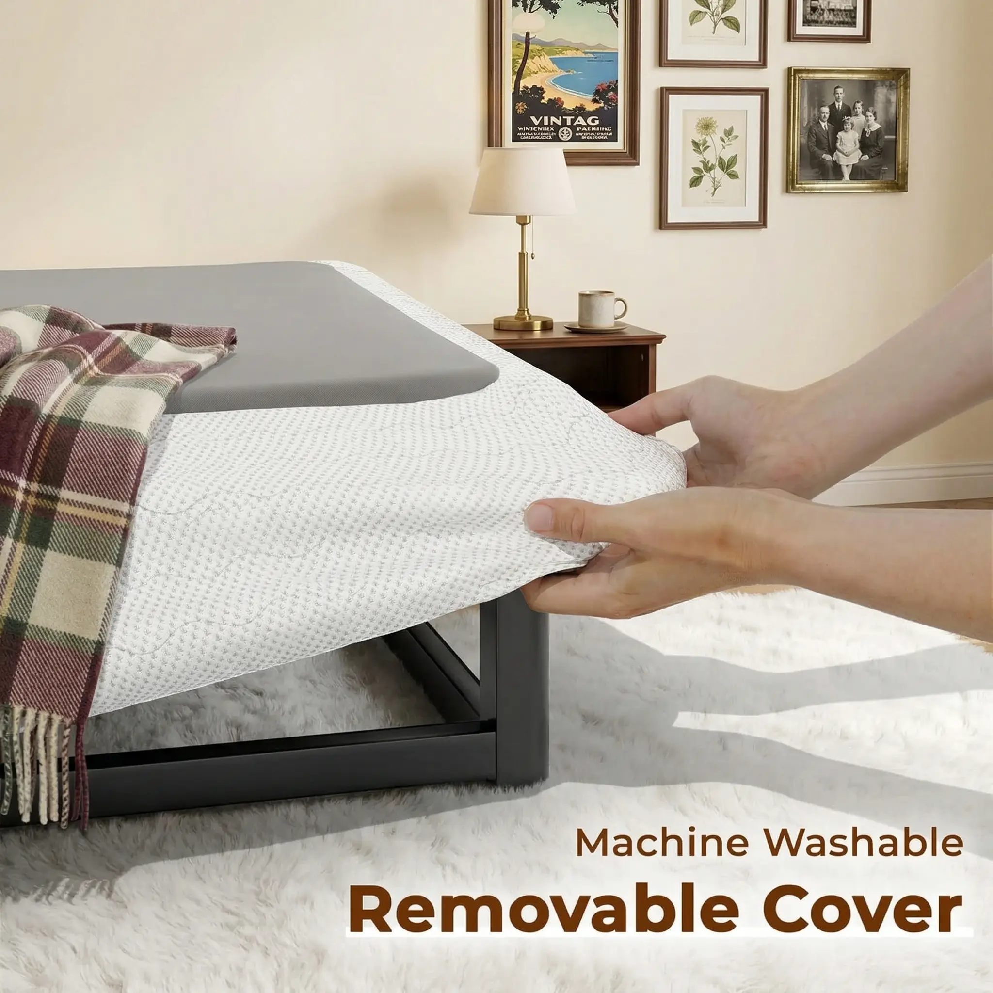 ·[Removable Washable Cotton Cover]: This box spring includes a premium removable, machine-washable cotton cover, combining style, hygiene, and easy maintenance. The sleek, tidy design complements any decor, making it a great fit for guest rooms, while the cover keeps the foundation clean and fresh for years of use.