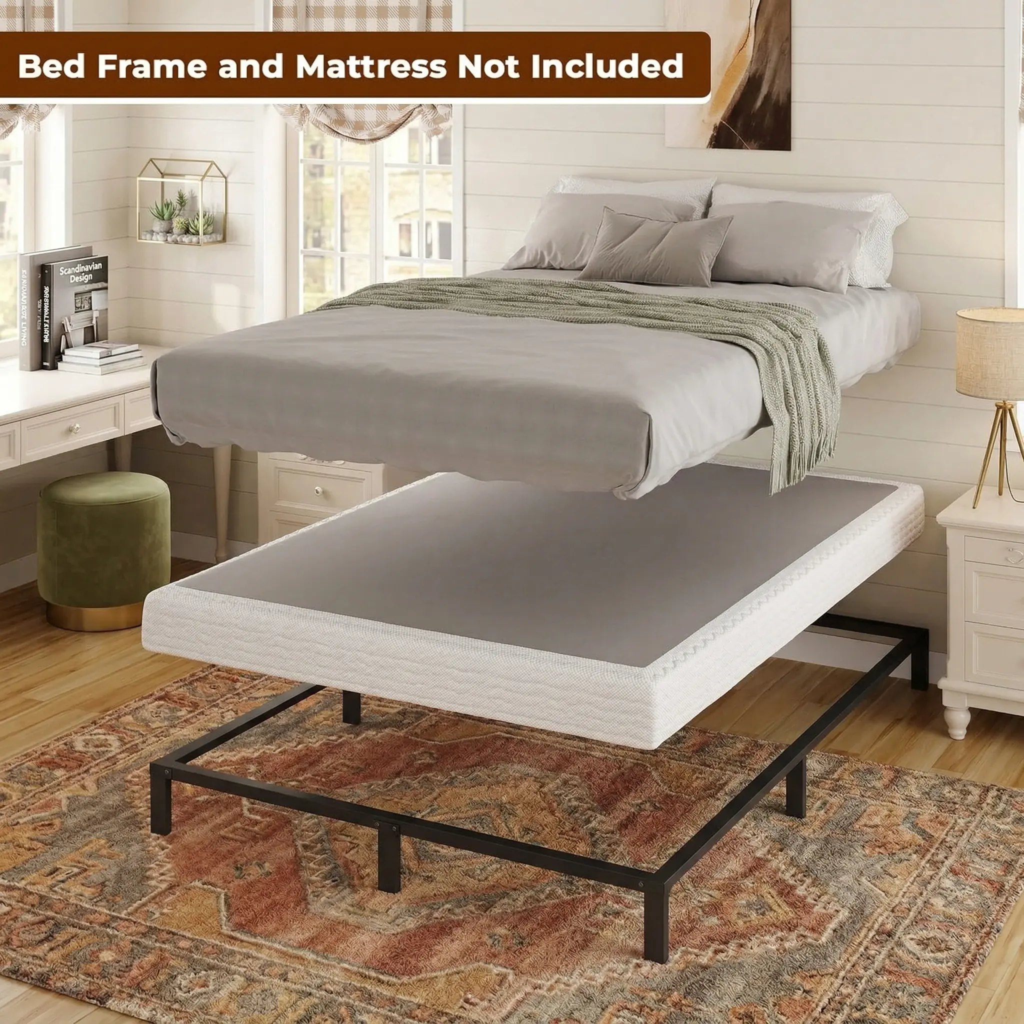 ·[7-Inch & 5-Inch Height Avaiable & Versatile Compatibility]: This box spring balances optimal under-bed space and low-profile aesthetics, seamlessly matching platform beds and modern bedroom setups. It works independently as a standalone foundation (no headboard required) or fits into existing bed frames, enhancing stability for any mattress type.
