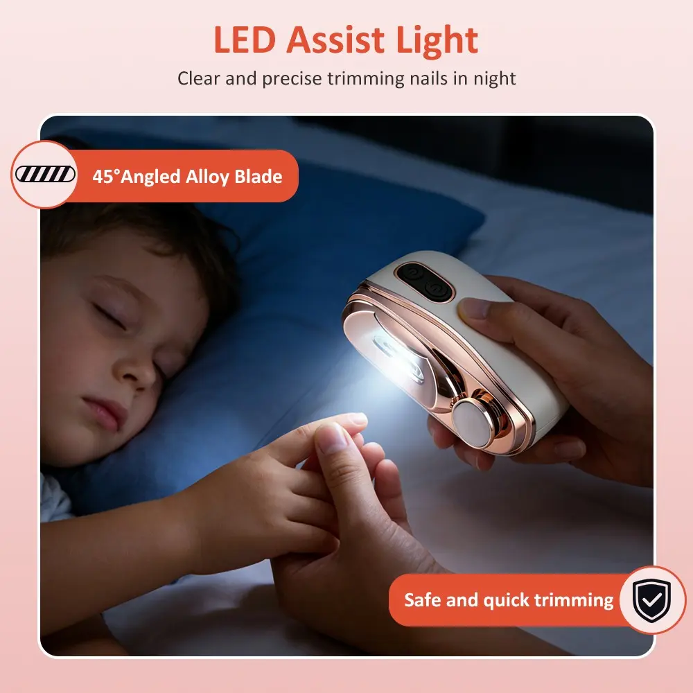 2 in 1 Electric Nail Clipper Polisher with Light Automatic Nail Cutter Clipper & Polishing Grinder Fingernail Toenail Trimmer 2-Speed Rechargeable