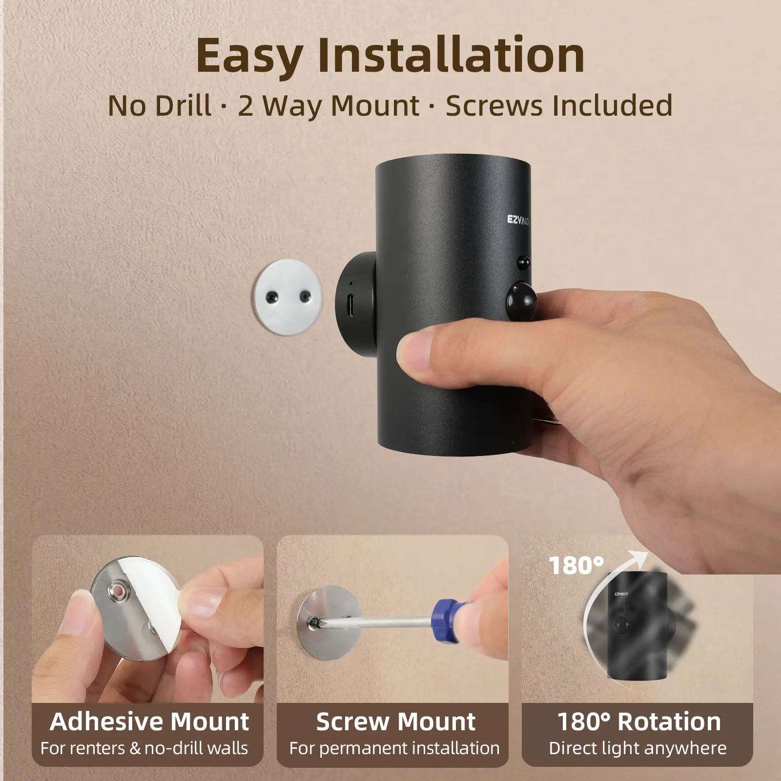 【Easy, Renter-Friendly Installation】Install in minutes with adhesive metal plates for smooth surfaces or screws for textured walls. The magnetic design allows you to attach or remove the light anytime for charging—no wiring, no damage, no hassle.