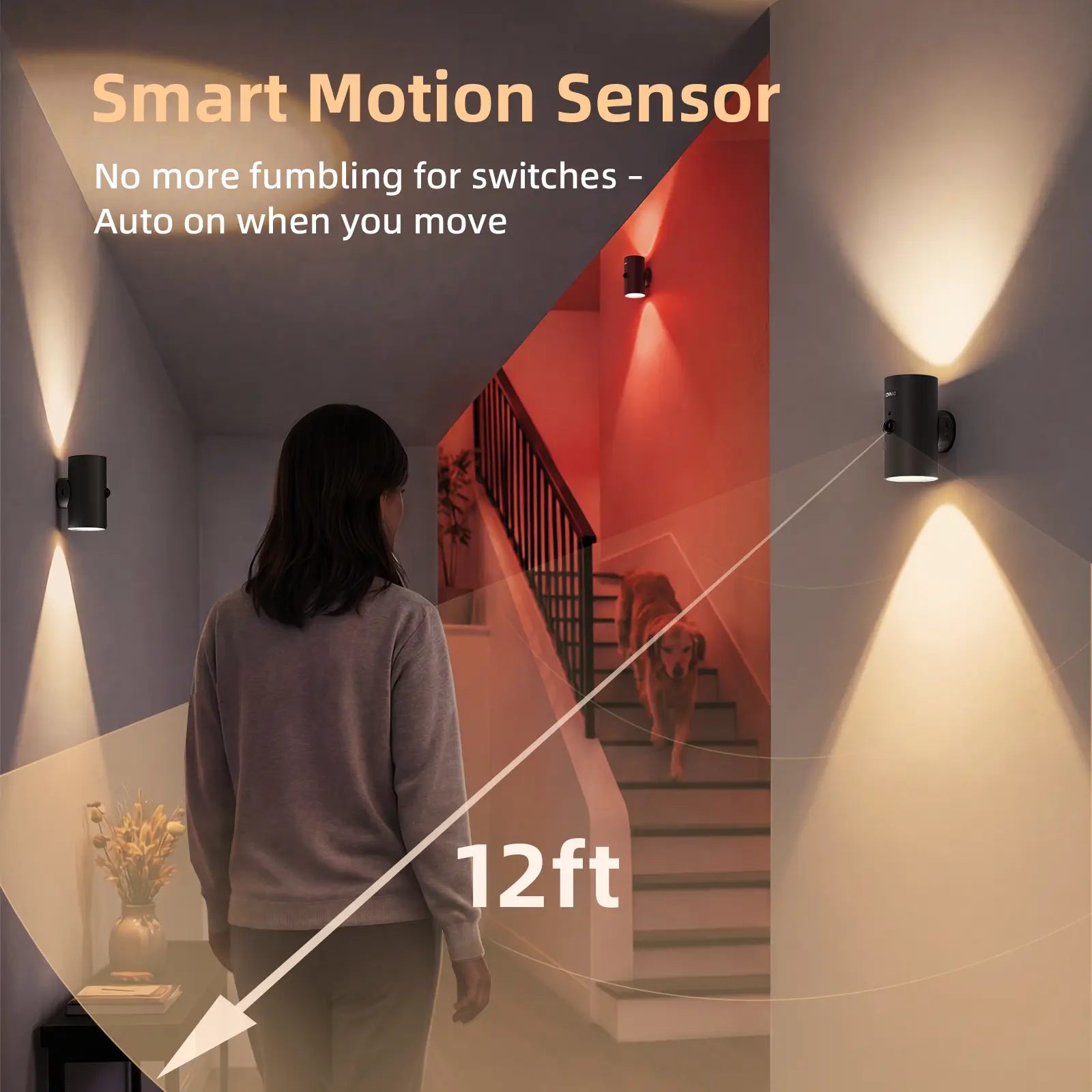 【Smart Motion Sensor with Dusk-to-Dawn】This indoor wall light automatically turns on when motion is detected within 10ft and 120° range in low light (below 30 lux), then turns off after 20s of inactivity for hands-free lighting. Designed as a soft guidance light for hallways, entryways, or late-night use without harsh brightness.