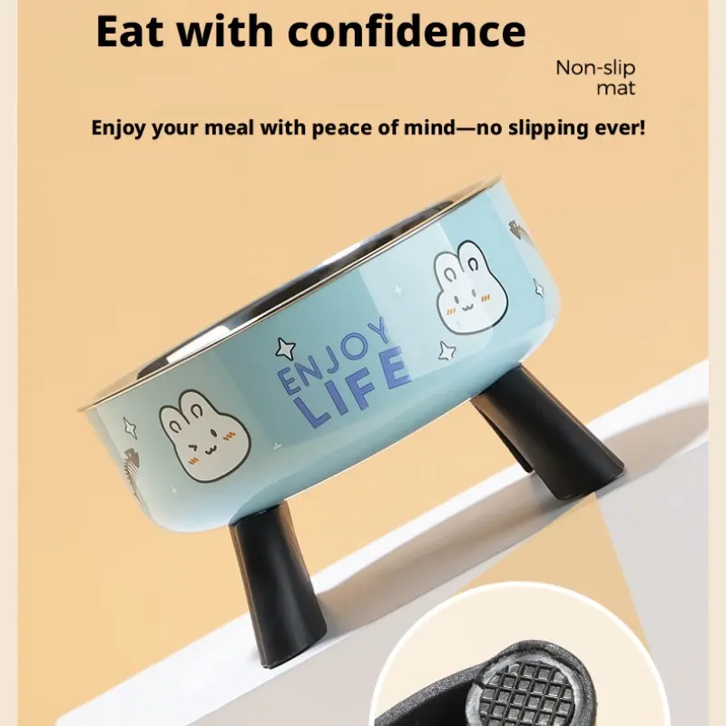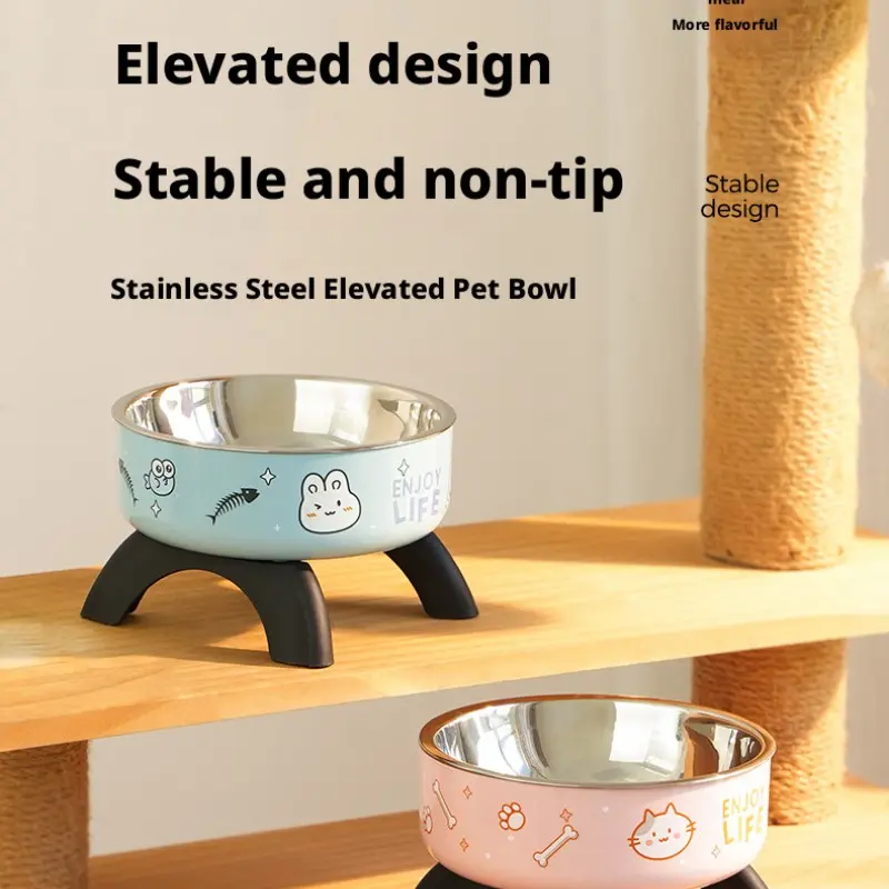 Cat High-Heeled Bowl Neck Protection, Pet Stainless Steel Bowl, Anti-Slip Non-Tip Dog Bowl, Durable Feeding Dish for Pets