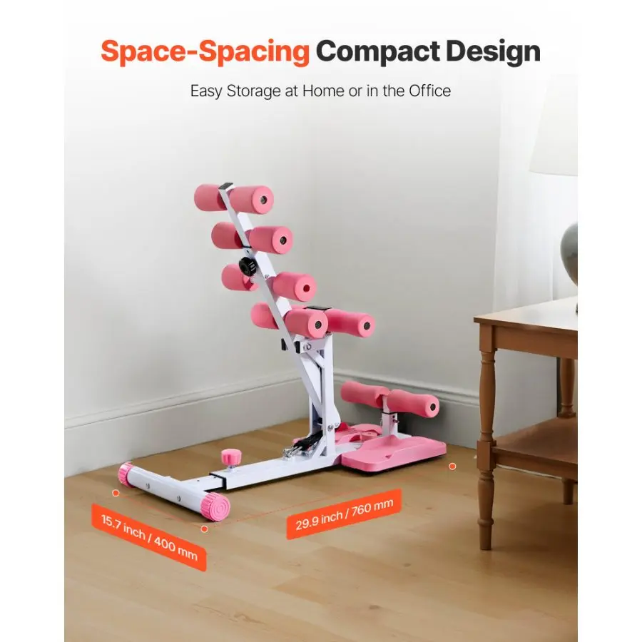 VEVOR Deep Squat Machine, Adjustable Glutes Trainer Machine with 3 High-Strength Resistance Bands, Folding Core Leg Glutes Exercise Trainer, Push Up Workout Equipment at Home Gym, Pink+ White