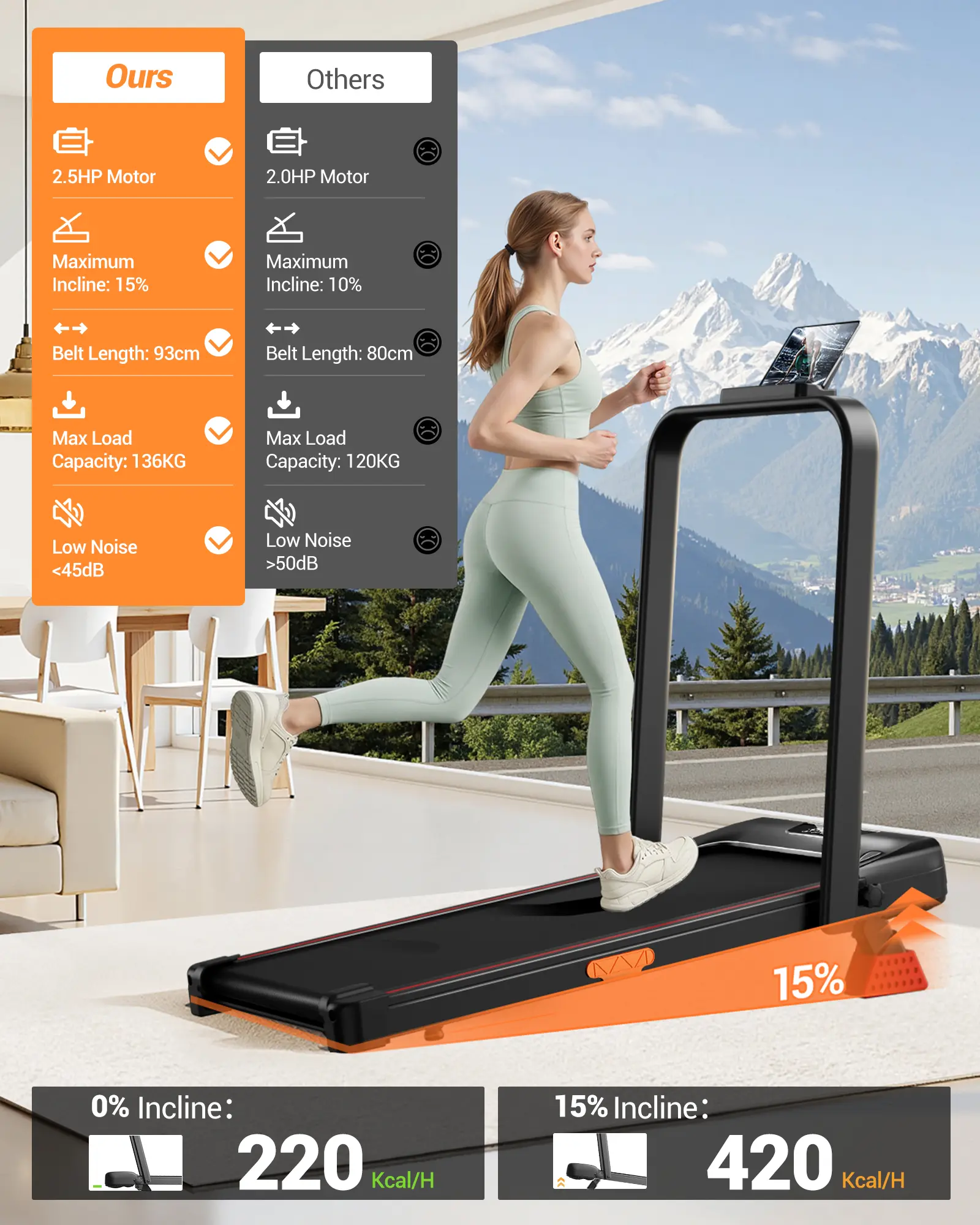 Walking Pad Treadmill: Experience up to 16% incline with foldable convenience. Perfect for workouts. Engage in more intense exercise! ️