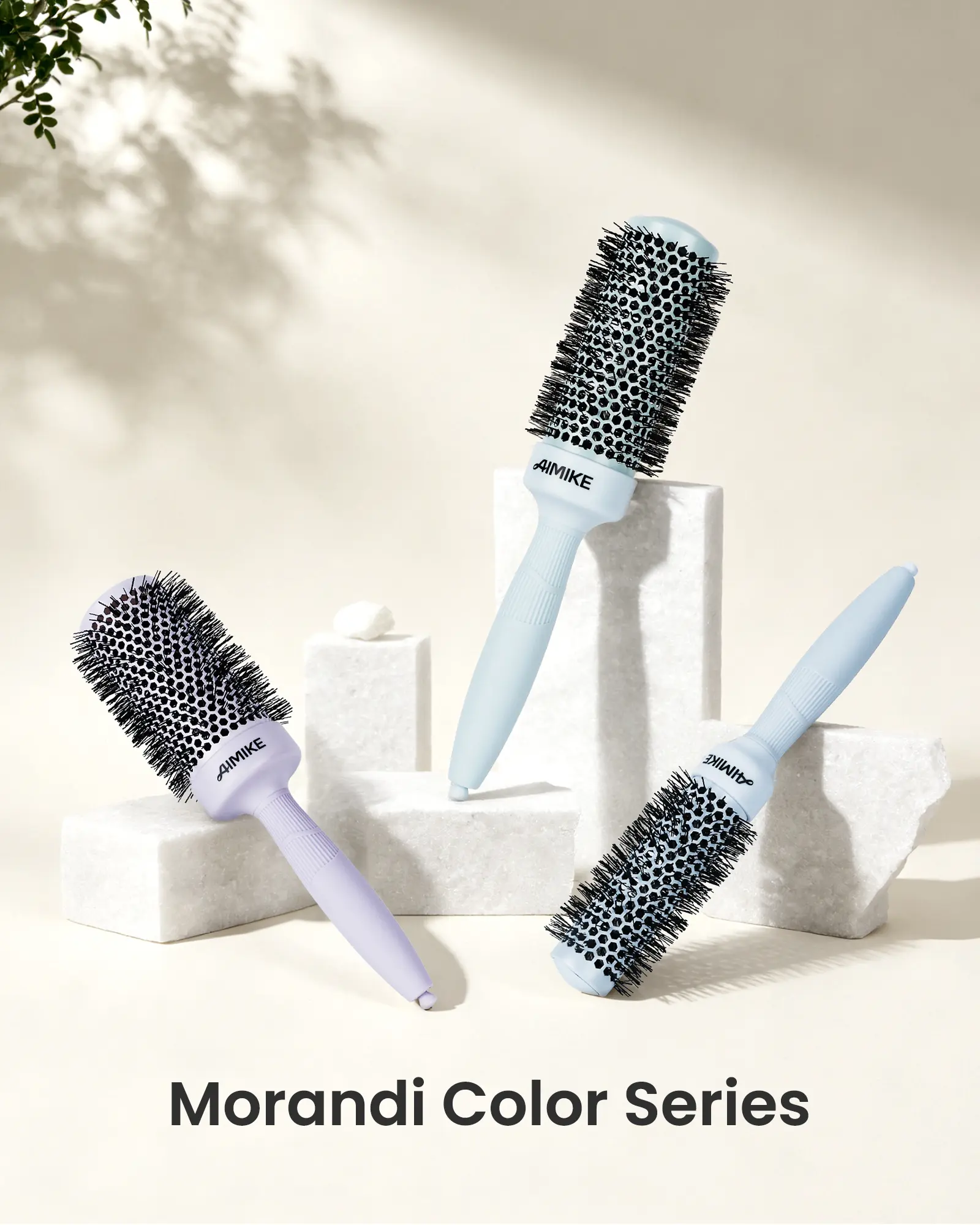 ·【Calm Morandi Color Series Round Brush】 The soft, muted Morandi tones add a tranquil atmosphere to your daily routine. The combination of teal, haze blue, and lavender mist purple effortlessly blends into any bathroom, vanity, or grooming space, breaking the monotony and infusing new vitality, offering a natural beauty.