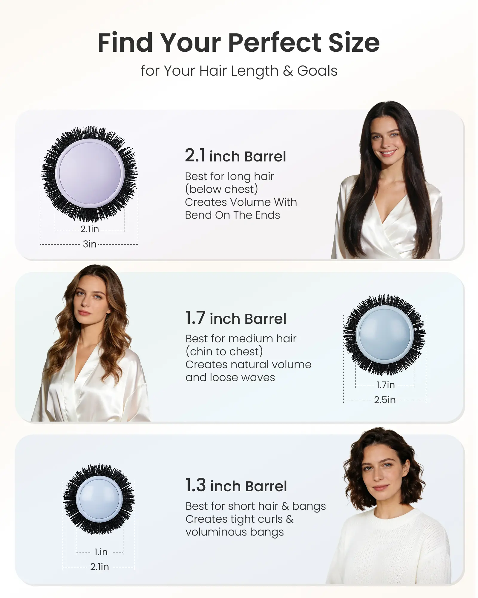 ·【Lightweight & Easy to Control】This round brush is lightweight with a comfortable silicone handle, ensuring effortless grip for long styling sessions. Its lightweight design allows for easy control, making it perfect for at-home styling and quick hair drying. The round hair brush also features a sectioning pin at the tail for easy hair parting and removal of loose strands from the brush. Two long hair clips are included, providing everything you need without the need for additional purchases.