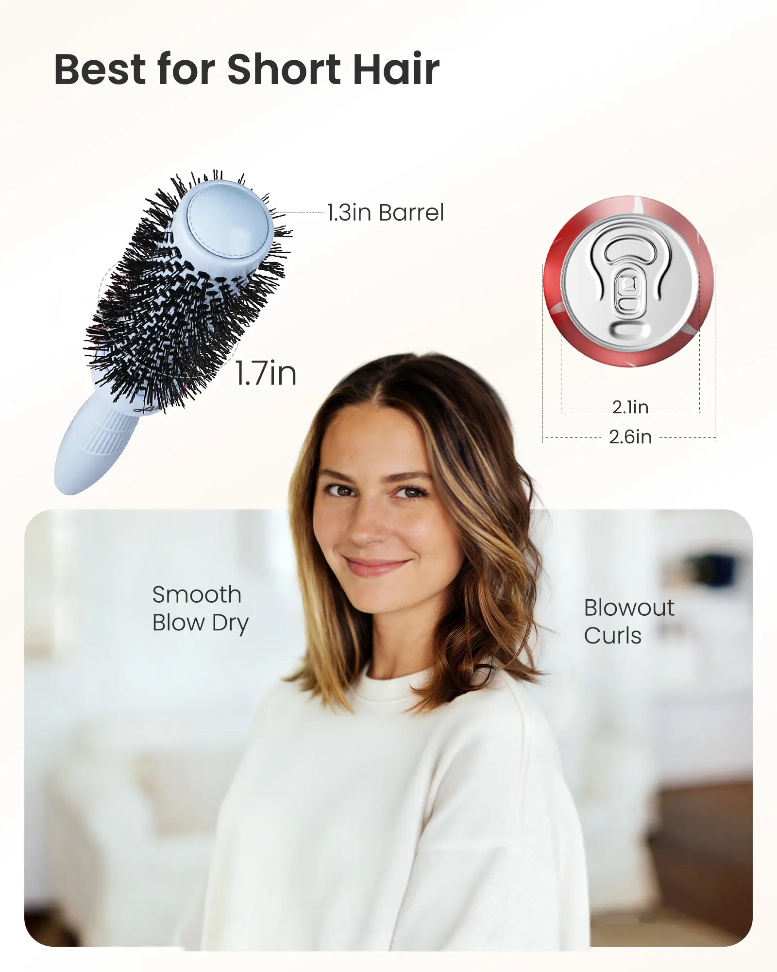 ·【Designed for Fine Hair & Natural Volume】Specially designed for fine hair, this round hair brush combines straight and curved soft nylon bristles to gently grip hair without pulling. The flexible bristle design helps lift at the roots and create natural, airy volume while staying kind to the scalp.