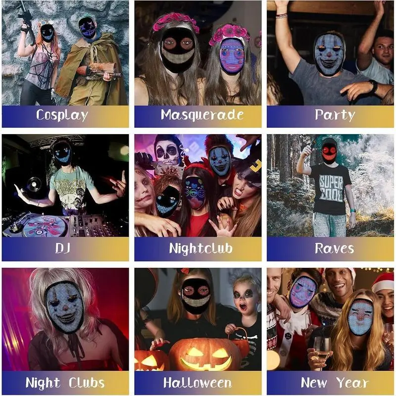 Led Mask,  App Controlled Halloween , Luminous Mask for Adults, Light up Costumes