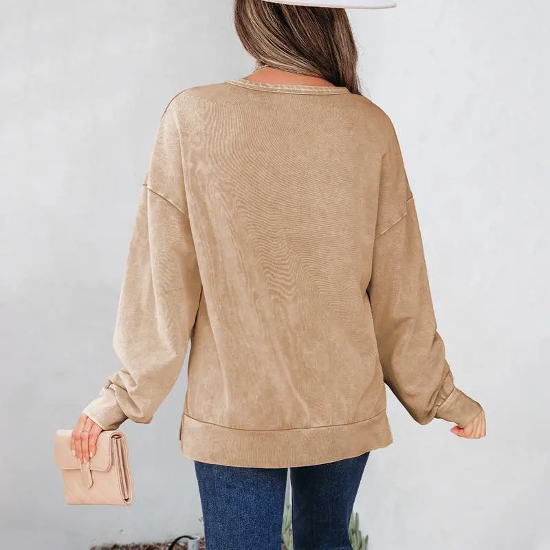 PRETTYGARDEN Womens Fashion Long Sleeve Hoodie Oversized Button Up V Neck Sweatshirt Side Slit Casual Pullover Tops for Fall Cozy Goals