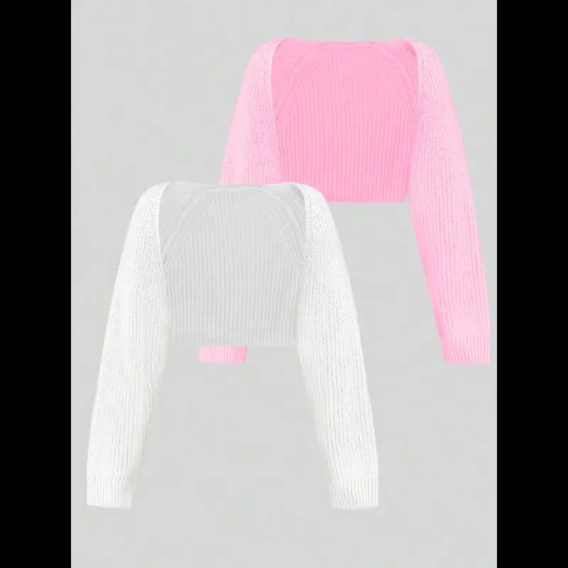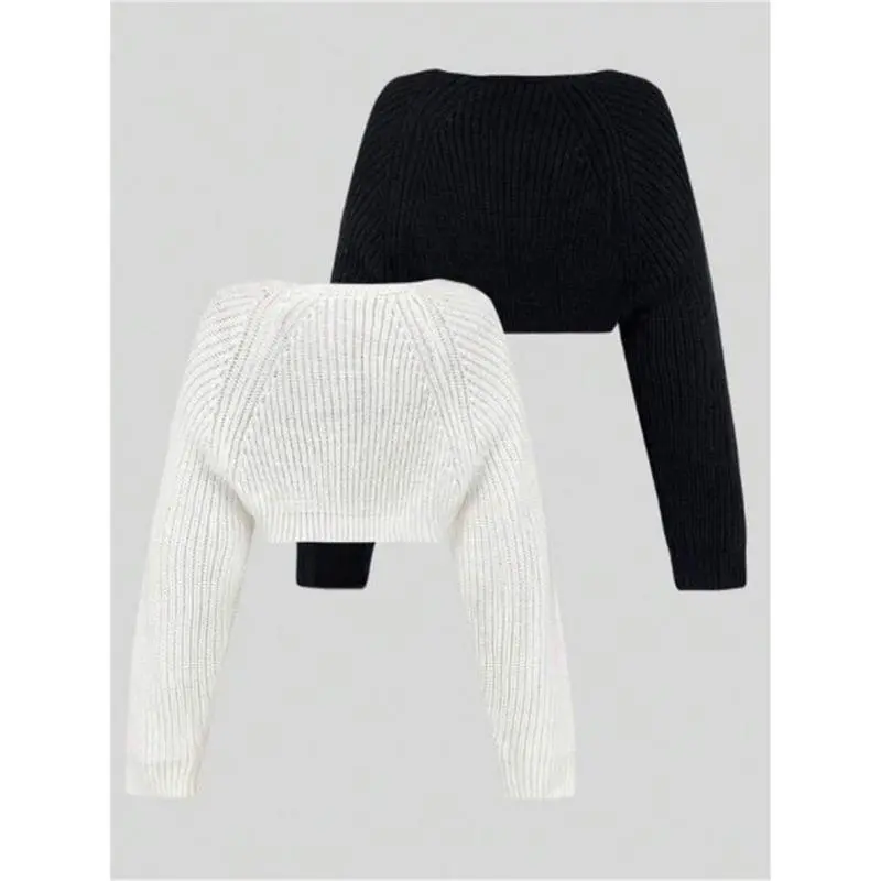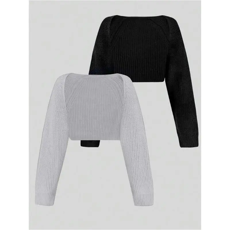 Women's Minimalist Textured Raglan Sleeve Shrug Set, Chic Open Front Sweater Cardigan, Cardigan for Women, Comfort Basic Long Sleeve Knitwear for Fall Two Piece Set, Crochet Clothes, Cardigans for Women, Lady Shrug Crop Tops