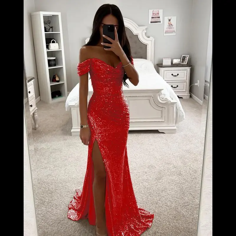Embrace the revival of fashion with this stunning one-shoulder sequin party dress, designed to turn heads at any event.The bodycon silhouette hugs your curves, while the high slit adds a touch of allure.Perfect for a night out or a dinner date, this dress combines nostalgic style with modern elegance./Product Features:/Inspired Design: Captures the essence of early 2000s fashion with a contemporary twist./One-Shoulder Style: Asymmetrical neckline for a chic and edgy look./All-Over Sequin Detail: Sparkling sequins throughout for a glamorous effect./High Slit: Adds a daring element while allowing ease of movement./Bodycon Fit: Tailored to accentuate your natural curves./Versatile Wear: Ideal for various occasions, from club nights to upscale dinners./Care Instructions:/Hand wash cold with like colors./Gem/Do not bleach./Lay flat to dry./Iron on low heat if necessary, avoiding sequin areas./Size Guide:/Please refer to the size chart provided by the retailer to select your appropriate size. If you are between sizes, consider sizing up for a more comfortable fit.