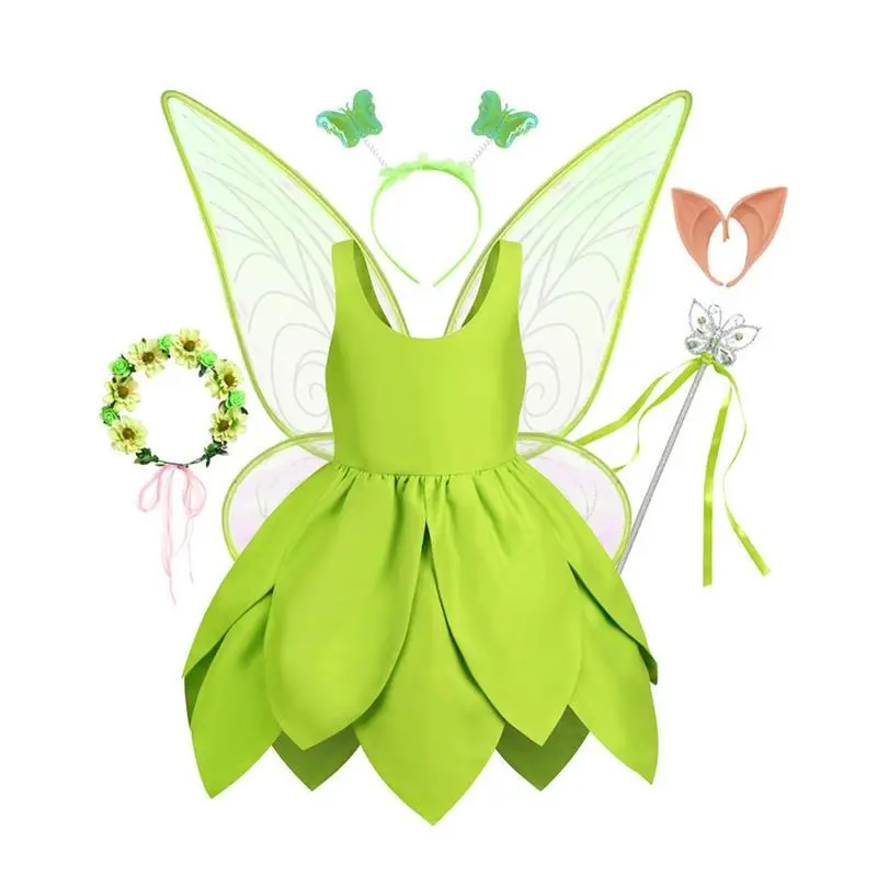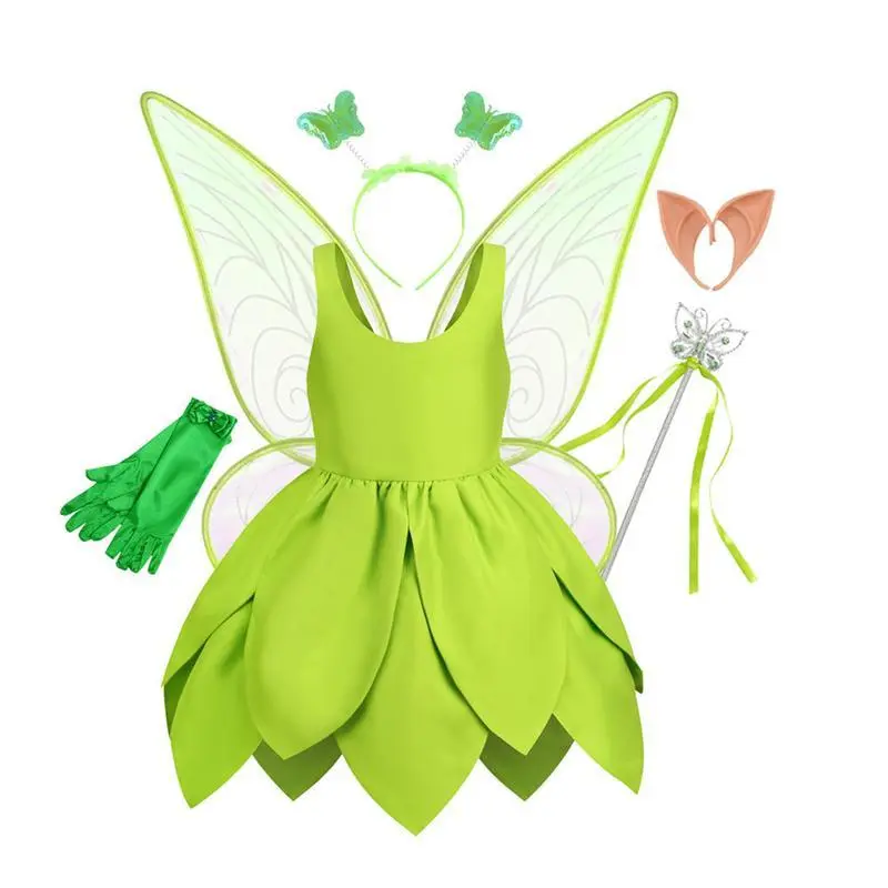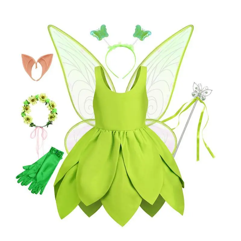 Kids Girl��s Cosplay Costume, Sleeveless Dress Butterfly Wings Wand Hair Hoop Fairy Outfit Halloween Costume After wearing the fairy outfit, your little girl will become the center of attention, she will like it! 90cm Bust: 50 Waist: 48 Suggest Age: 24 Months 100cm Bust: 54 Waist: 52 Suggest Age: 3 Years 110cm Bust: 58 Waist: 56 Suggest Age: 3-4 Years 120cm Bust: 62 Waist: 60 Suggest Age: 4-5 Years 130cm Bust: 66 Waist: 64 Suggest Age: 6-7 Years 140cm Bust: 70 Waist: 68 Suggest Age: 8-9 Years 90cm Bust: 19.69 Waist: 18.90 Suggest Age: 24 Months 100cm Bust: 21.26 Waist: 20.47 Suggest Age: 3 Years 110cm Bust: 22.83 Waist: 22.05 Suggest Age: 3-4 Years 120cm Bust: 24.41 Waist: 23.62 Suggest Age: 4-5 Years 130cm Bust: 25.98 Waist: 25.20 Suggest Age: 6-7 Years 140cm Bust: 27.56 Waist: 26.77 Suggest Age: 8-9 Years Item Name: girl��s dress set Size: 90cm, 100cm, 110cm, 120cm, 130cm, 140cm Style 1: x dress Style 2: x dress + 1 pair of butterfly wings + x magic wand + x hair hoop Style 3: x dress + 1 pair of butterfly wings + x magic wand + x hair hoop + 1 pair of elf ears Style 4: x dress + 1 pair of butterfly wings + x magic wand + x hair hoop + 1 pair of elf ears + x wreath Style 5: x dress + 1 pair of butterfly wings + x magic wand + x hair hoop + 1 pair of gloves + x wreath + 1 pair of elf ears 1.Please kindly allow 2-3% difference according to manual measurement 2.Please note that slight color difference should be acceptable due to the light and screen. Thanks. If the product has any quality problems, please feel free to contact us, we will help you solve the problem as quickly as possible.