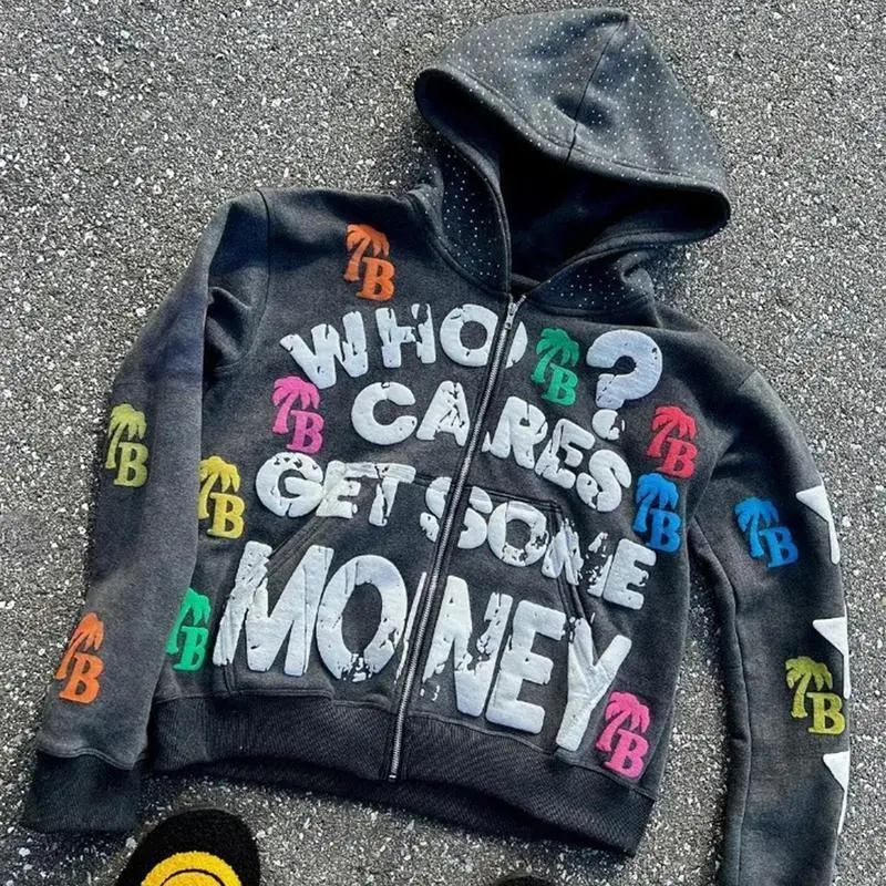 Unisex Letter Pattern Fashion Hoodies Zipper Pattern Hoodies Y2K Hip Hop Streetwear Harajuku Fashion
