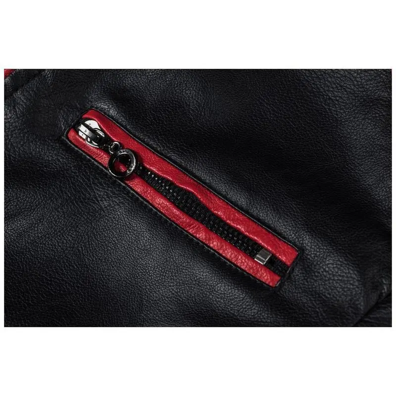 2025 Men��s Faux Leather Jacket - 2 Styles (Thin & Fleece - Lined), Fashion Color - Blocked Motorcycle Retro Biker Jacket Menswear Red