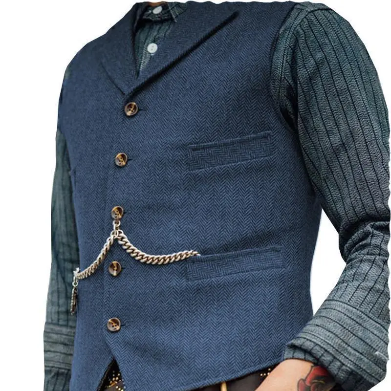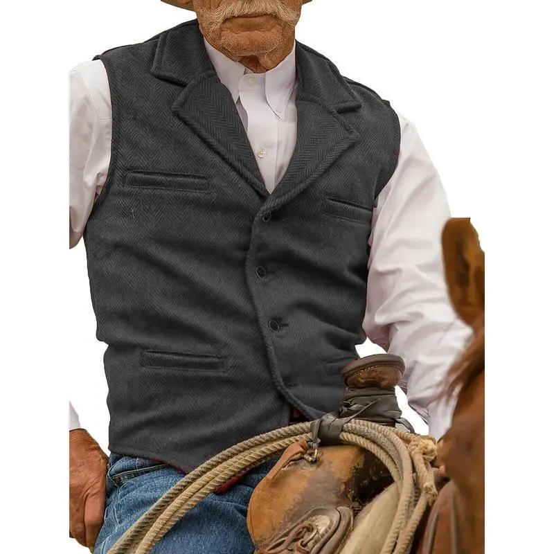 Men's Tweed Cowboy Vests Hunting Fishing Wool Herringbone Retro Elderly Aged Adult Men's Vintage Western Casual Business Vests Menswear Suits British Style Beige Black Plain Sleeveless
