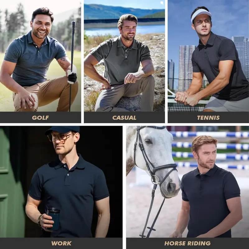 Polo Shirts for Men - Quick Dry Moisture Wicking Black Short Sleeve Performance Golf T Shirts for Casual Work Athletic