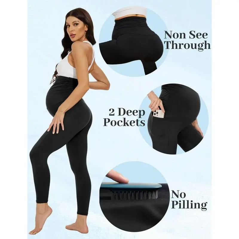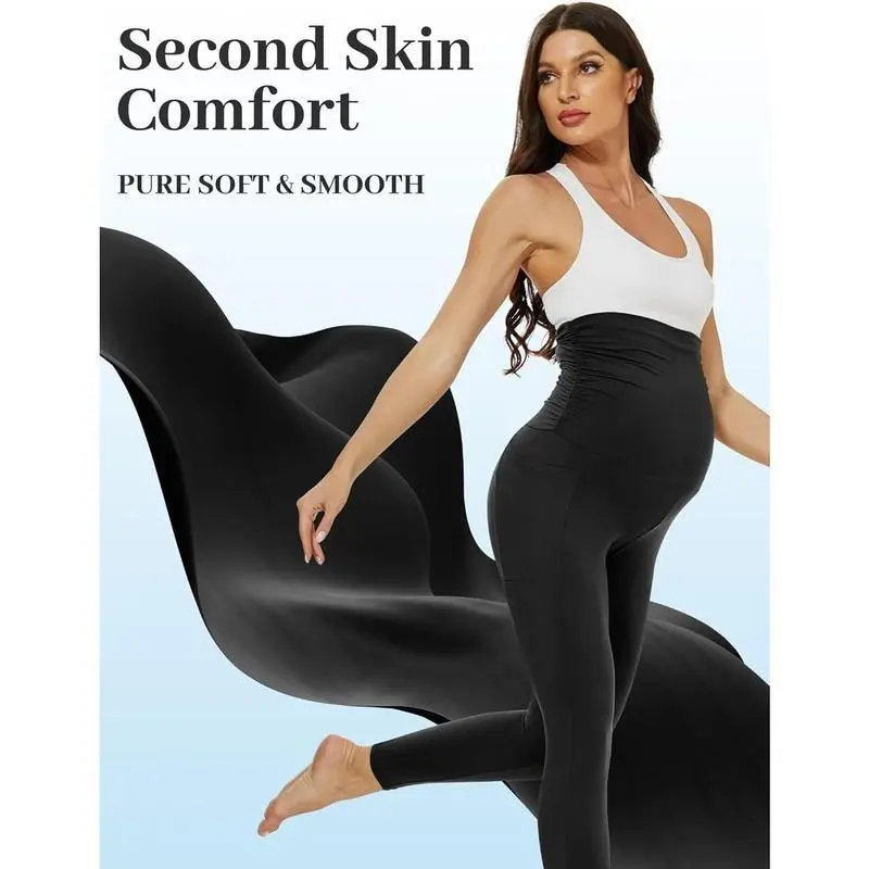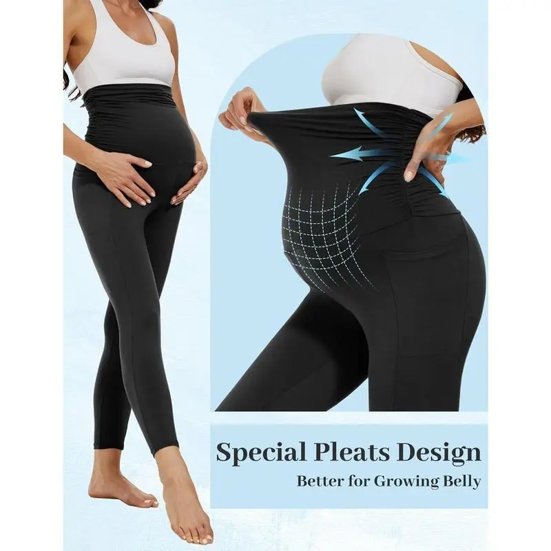Special Pleats Design:The extra elastic pleats on both side waist provide ultimate coverage for your growing belly. Our maternity leggings are made of 4 way stretch and non see through fabric that will stretch and recover with your changing shape Comfort Right Thickness:Experience ultimate comfort with these silky soft maternity legging of the right thickness, providing soft support without excess pressure, for wearing all year round. Breathe enough for hot day and cover enough for chilly day Convenient Pockets: Stay release hands with maternity legging that come equipped with dual, deep side pockets perfect for storing your the essentials while on-the-go. Pregnancy pants make present for yourself or a loved one during pregnancy or postpartum Transform Your Everyday Look:Designed for versatility, be it at the gym, shopping, running,yoga,walking,lounge or everyday wear, the cute maternity leggings will take you need to go, providing you with the style and comfort you need during your pregnancy Multi color for your choice:Discover your unique style with our diverse range of color, from classic colors like black, gray, and navy, to playful choices like pink, green.Our versatile maternity leggings can be casual wear fit any occasion