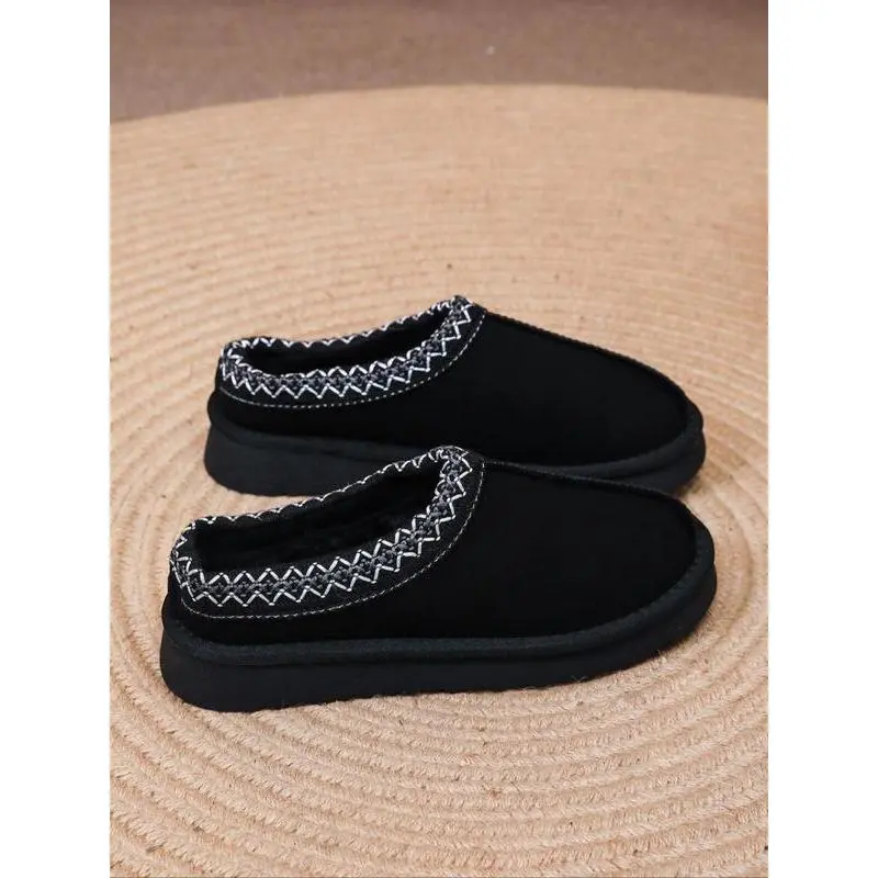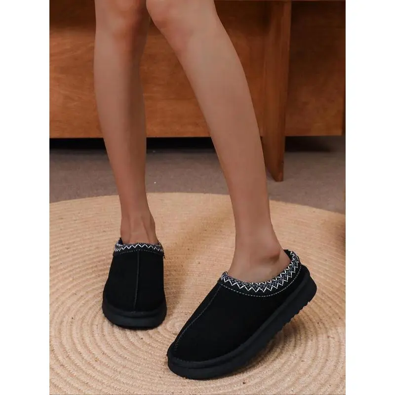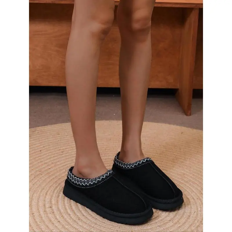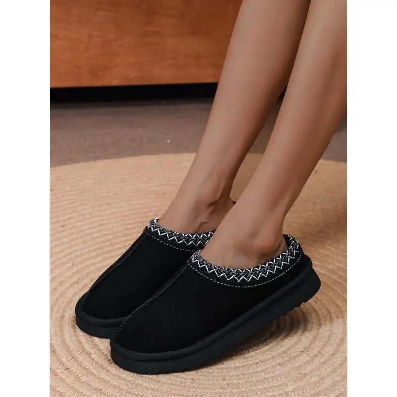 Men's Fashionable Plain Color Slippers, Casual Comfortable Black Home Slippers, Unisex Woof Slippers, Warm Soft Cushioned Slippers for Indoor & Outdoor Use for Fall & Winter, Footwear, Shoes for Women