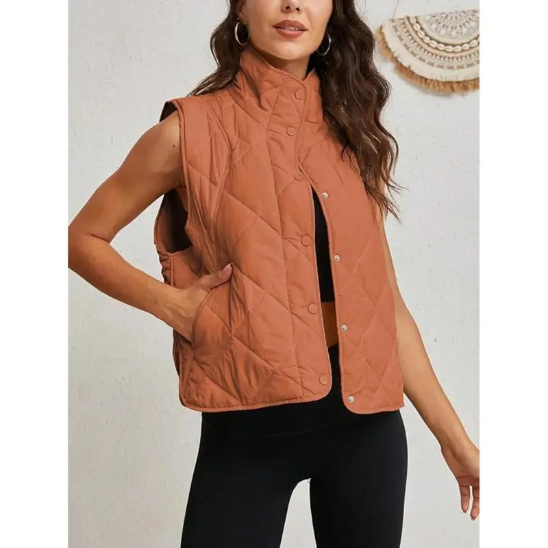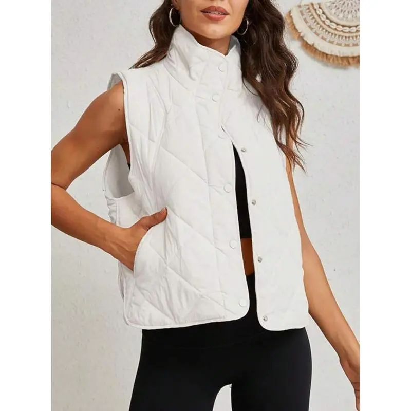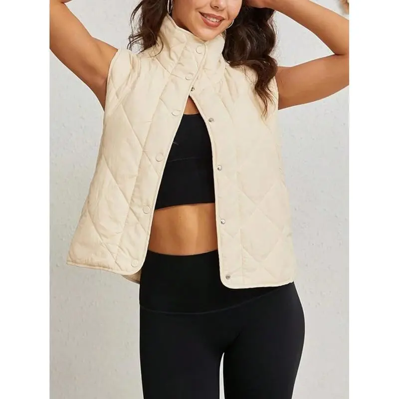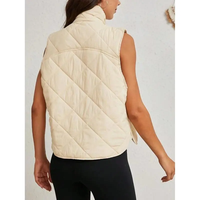 Women's Quinn Quilted Down Vest, Wardrobe Essential/Product Material: This women's quilted vest is made of comfortable lightweight fabric, allowing you to wear it comfortably without pressure/Side pockets can store essential items, snap button design, stand collar design.Slim fit, long armholes for easy movement.A super cool lightweight down vest designed with down filling to keep you warm while also accommodating various types of innerwear/Fashion Style: The novel printed appearance brings a unique style, and the slightly loose fit creates a casual fashion atmosphere for your clothing.Quilted fabric paired with down filling design brings a warm feelingQuinn quilted vest brings you a cute and fashionable look, always leading the trend/Compatible& Suitable for occasions: Women's quilted down vest is easy to match, not only a versatile fashion item but also perfect with T-shirts and pullovers; ideal for cool camping trips and daily commuting, can be worn in spring, autumn, and winter/Neckline: Funnel Collar/Suitable occasions: night out, vacation, daily use, travel, brunch/Main body: Lined/Hem Shape: Regular/Applicable holidays: Christmas, Halloween, Thanksgiving, Back-to-School Season, Valentine's Day, Pride Month, Teacher's Day, Mother's Day, New Year, Independence Day, Women's Day, Spring Festival, Graduation Season/Pattern Type: Normal/Features: Windproof and Warm/Type: Vest/Lining for added warmth: None/Pocket: Yes/Placket: Single-breasted/Style: Casual/Sleeve Type: Regular Sleeve/Details: Zipper, Pocket, Front Button/Color: Beige/Sleeve Length: Sleeveless/Length: Regular/Version Type: Regular Version/Fabric Elasticity: Micro-Elastic, Non-Elastic/Material: Composite Fabric/Ingredients: 100% Polyamide/Pure: No