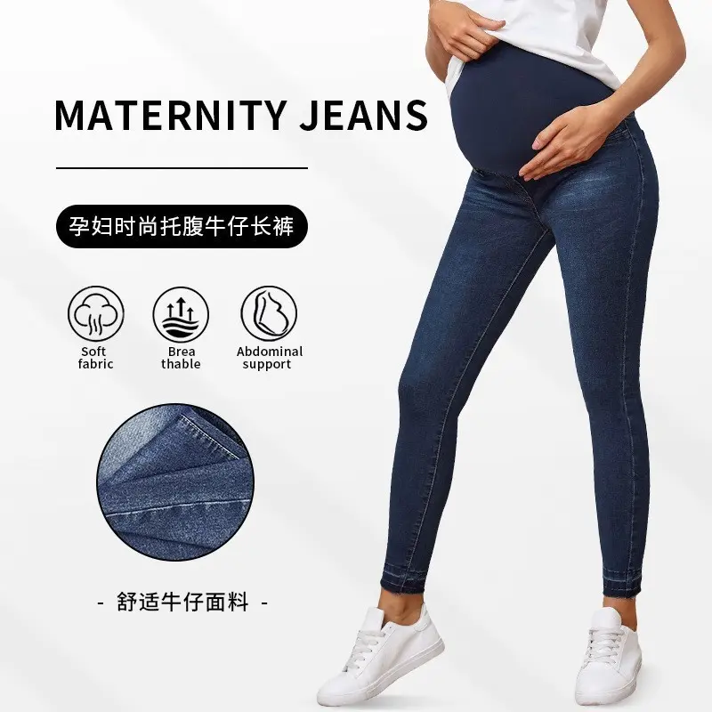 Elegant Maternity Denim Jeans with High Waist and Belly Support Ripped Design Perfect Slim Fit Stretch Pants for Spring Pants womenswear Pregnant