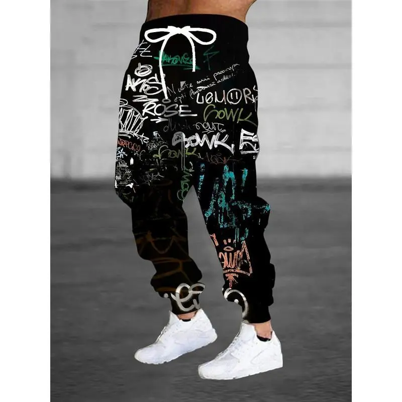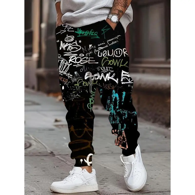 [Graffiti Print Sweatpants] 3D Graffiti Print Sweatpants - Men's Casual Polyester Joggers with Drawstring and Pockets - Slight Stretch Knit Fabric Menswear Trouser Mixed Color