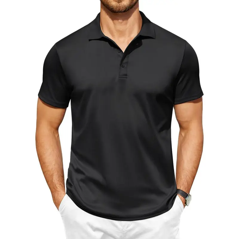 Mens Collared Polo Shirts Dry Fit Short Sleeve Daily Wear Business Work Tshirts