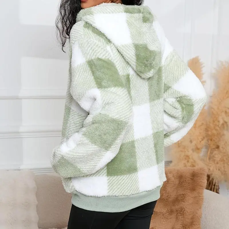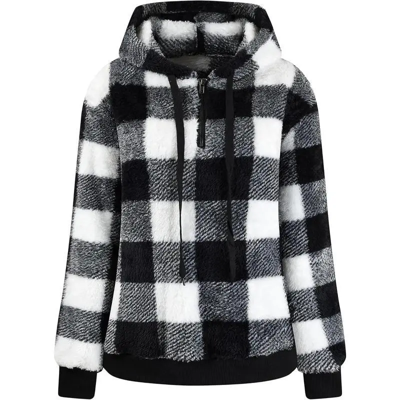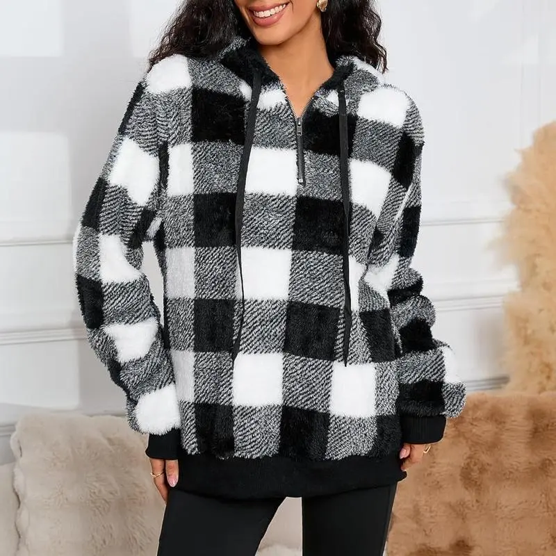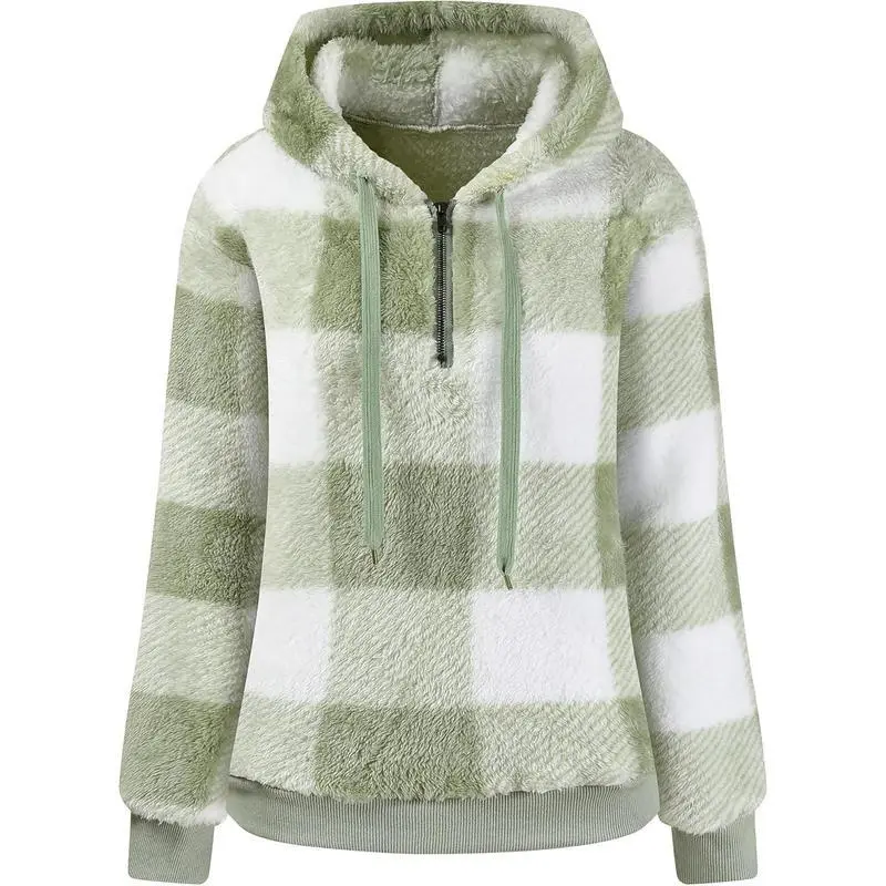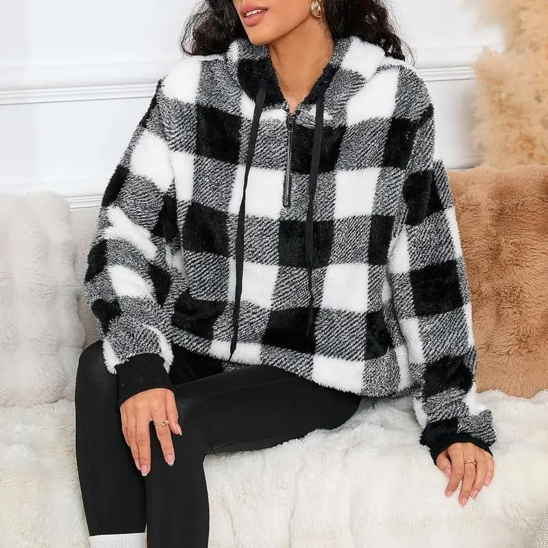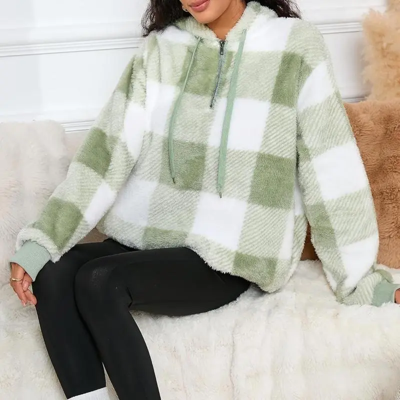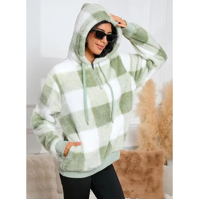Women's Sherpa Pullover Sweatshirt Faux Fleece Quarter Zip Hoodie Double Fuzzy Hoodies with Pockets