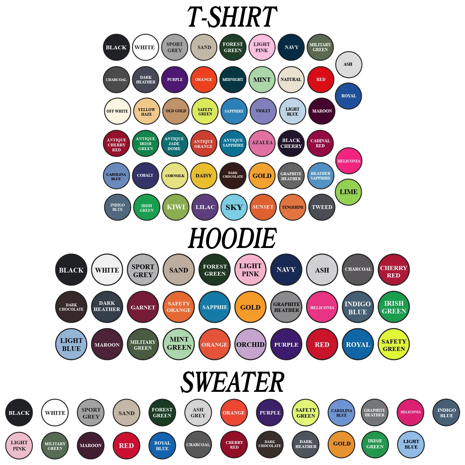 Heather colors are 50% cotton, 50% polyester (Sport Grey is 90% cotton, 10% polyester)
