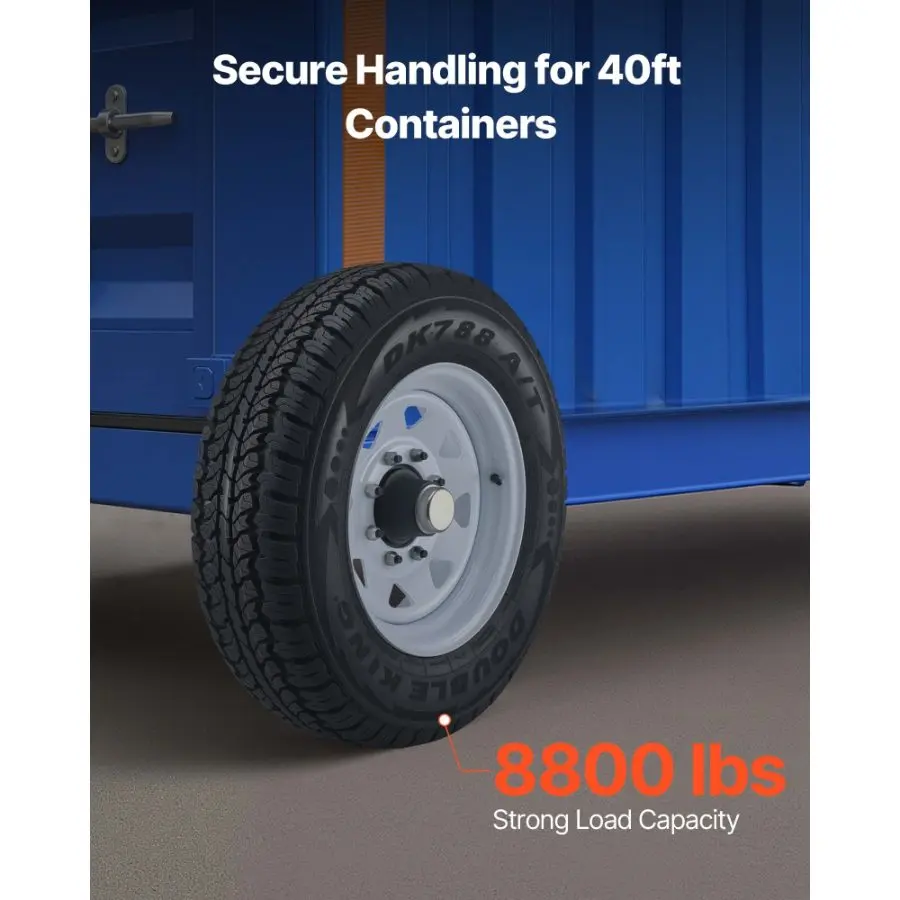 VEVOR Shipping Container Wheels 8-Lug Wheels Kit, Heavy Duty Shipping Container Accessories with Ratchet Tie Down-Moves 20 ft - 40 ft, Secure Transport for Dock, Warehouse, Construction Site, Black