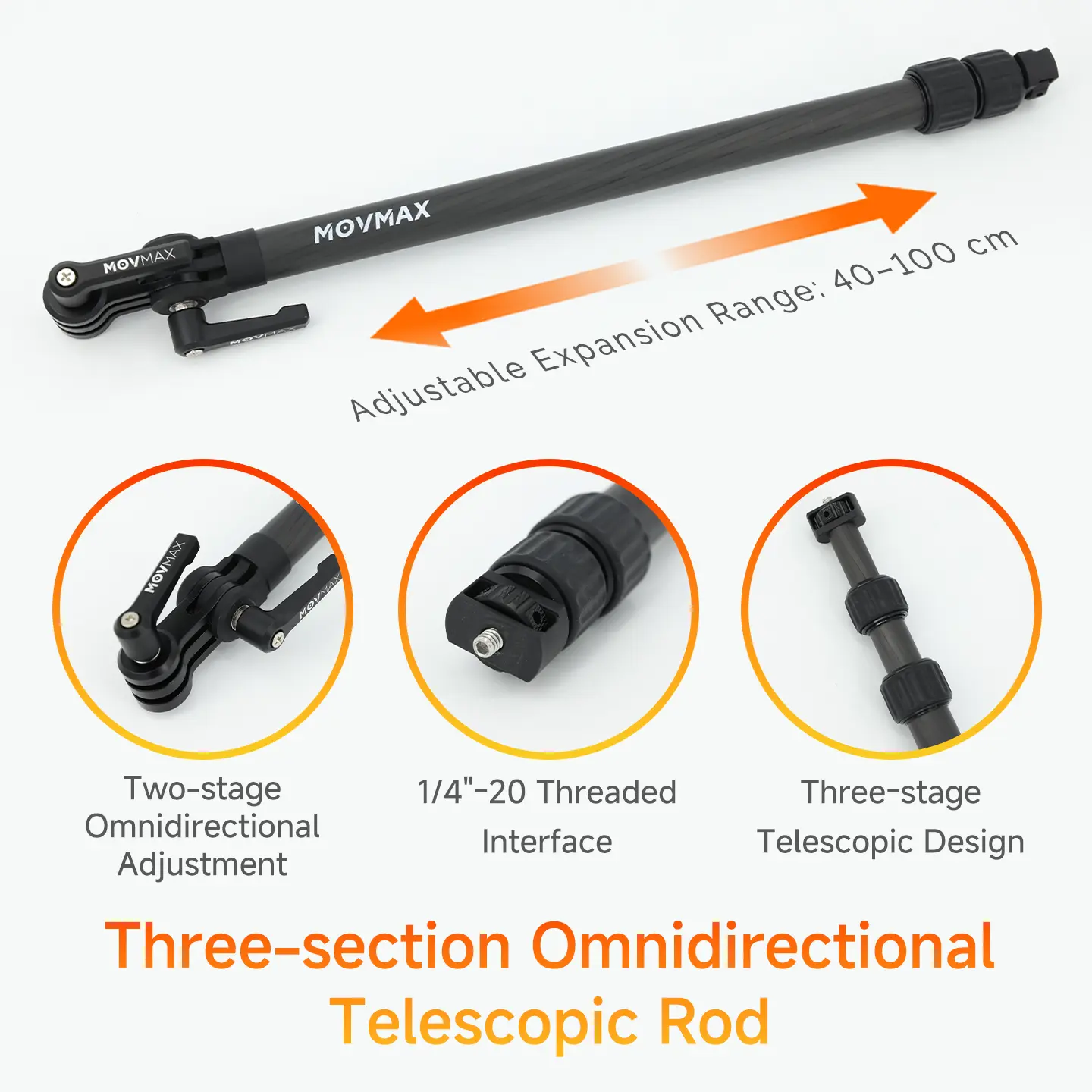 Movmax Backpack Mount with Telescopic Rod Kit for Insta 360 X5/DJI Osmo 360 Camera