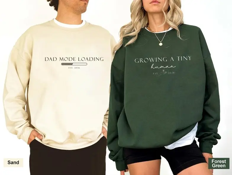 5. Personalized Growing A Tiny Human Pregnancy Announcement Sweatshirt, New Mom Dad Hoodie, Future Mom Dad Parents Gift