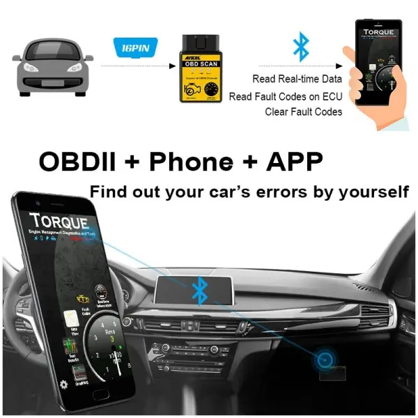 Bluetooth Car Diagnostic Tool Read Erase Errors Engine System OBDII EOBD Automotive Code Reade
