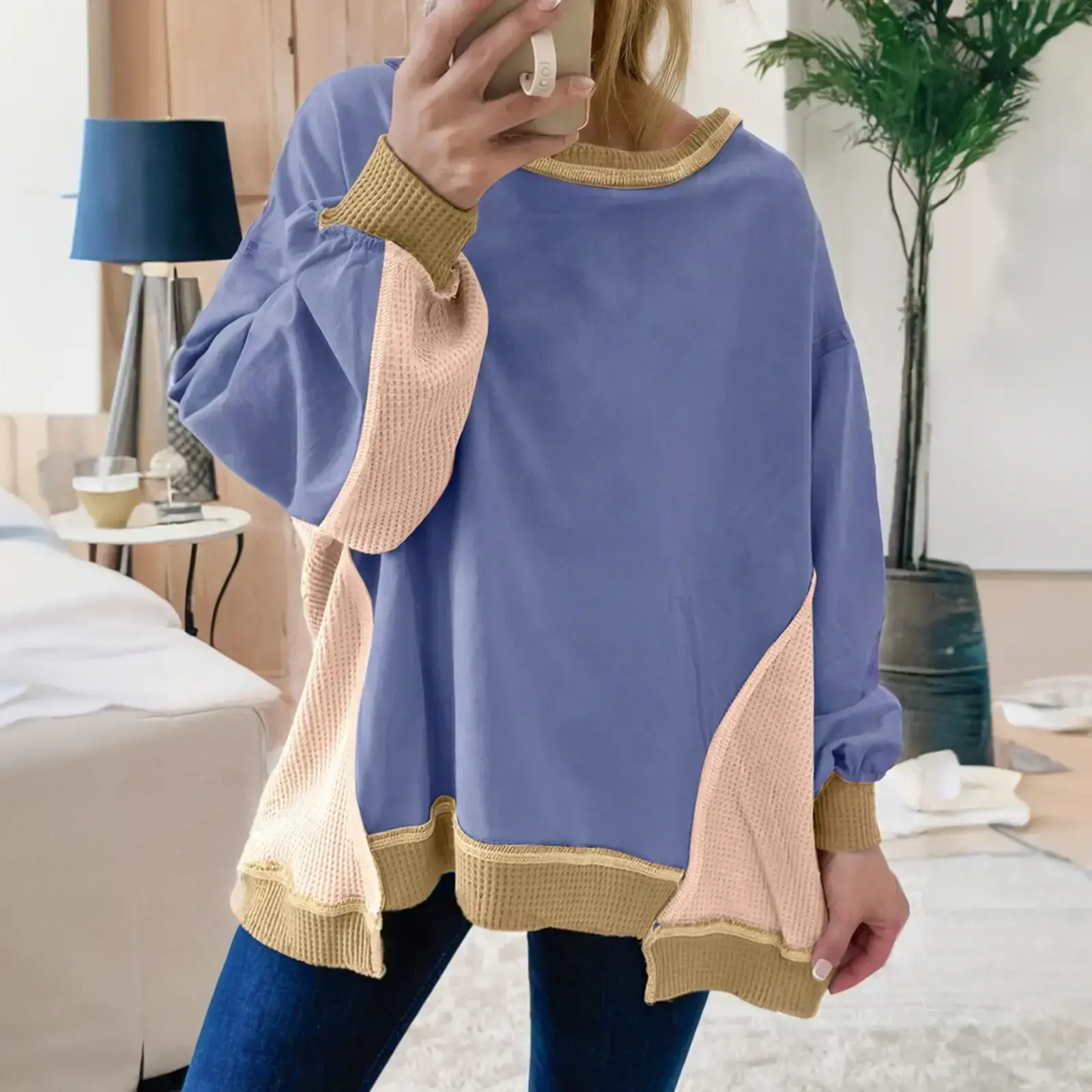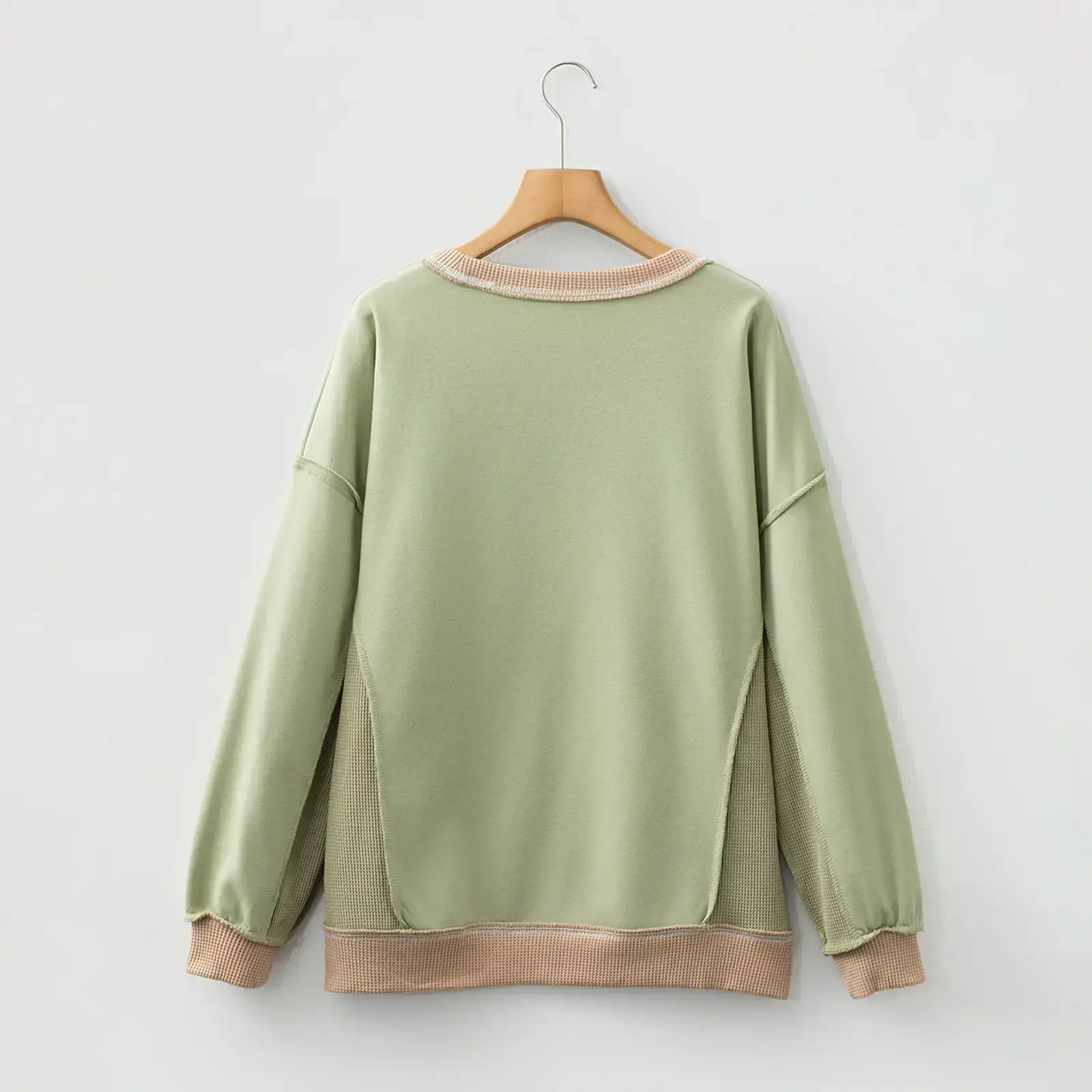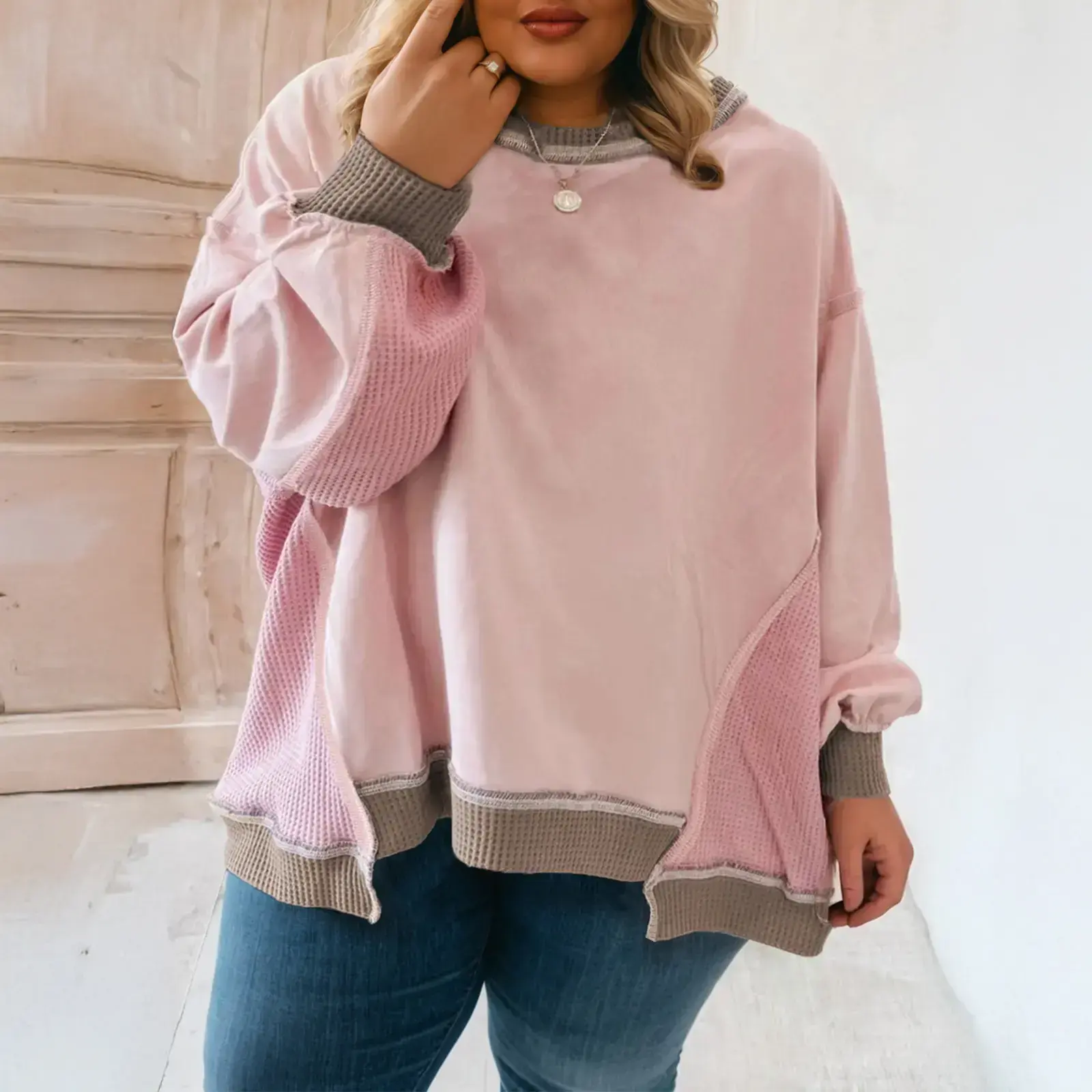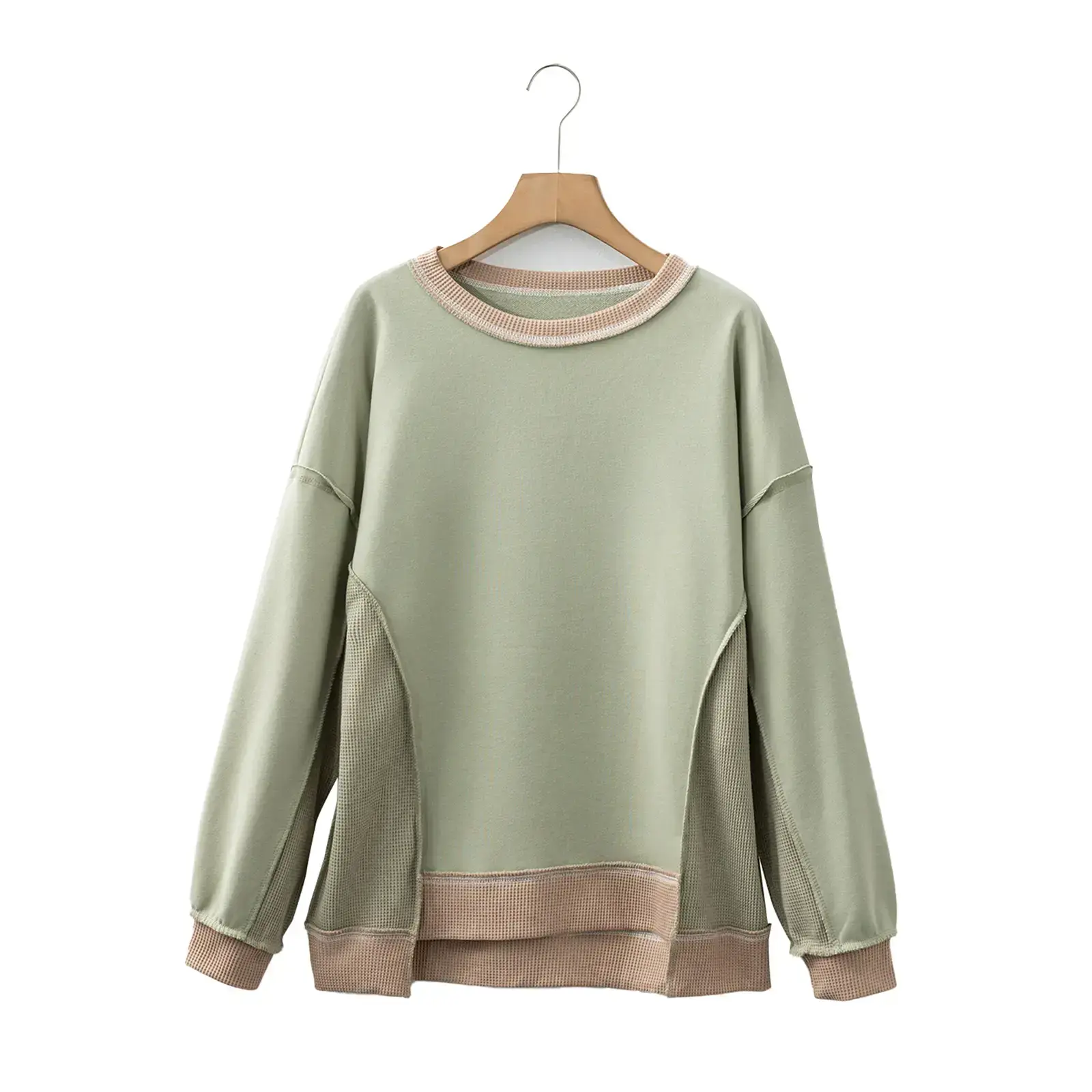 Color Block Mix Texture Waffle Patchwork Oversize Sweatshirt Full Size Range Available in Size S-4X Both for Plus Size & Regular